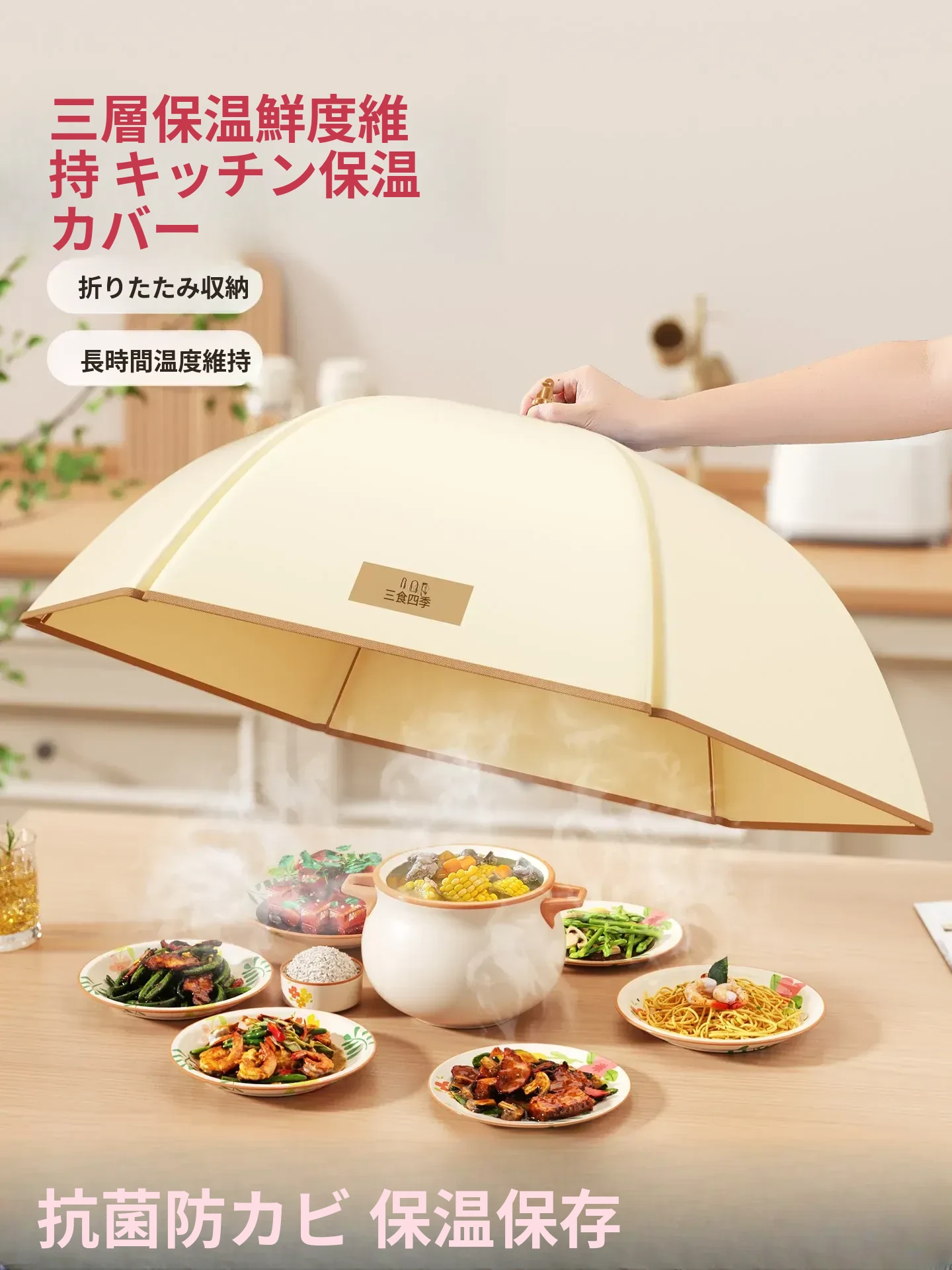 抗菌折りたたみ式保温カバー|家庭用ダストカバー|冬の新商品|残り物も美味しく保温!食卓を守る必需品!