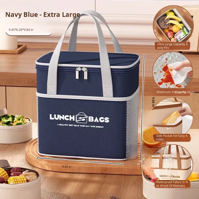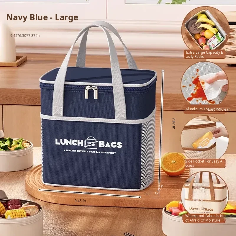 Navy Blue - Medium [Four-Layer Thickened Aluminum Foil / Long-Lasting Insulation / Waterproof & Stain-Resistant / Extra-Large Capacity]