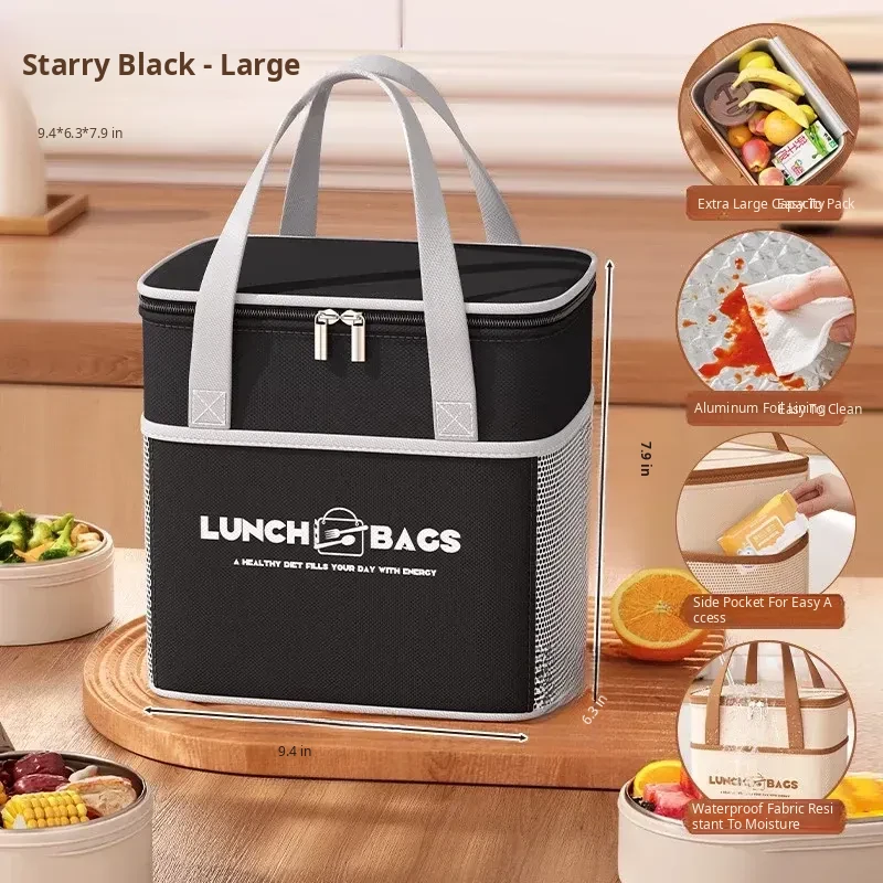Obsidian Black-Medium [Four Layers of Thickened Aluminum Foil/Long-Lasting Thermal Insulation/Waterproof and Anti-Fouling/Super Large Capacity]