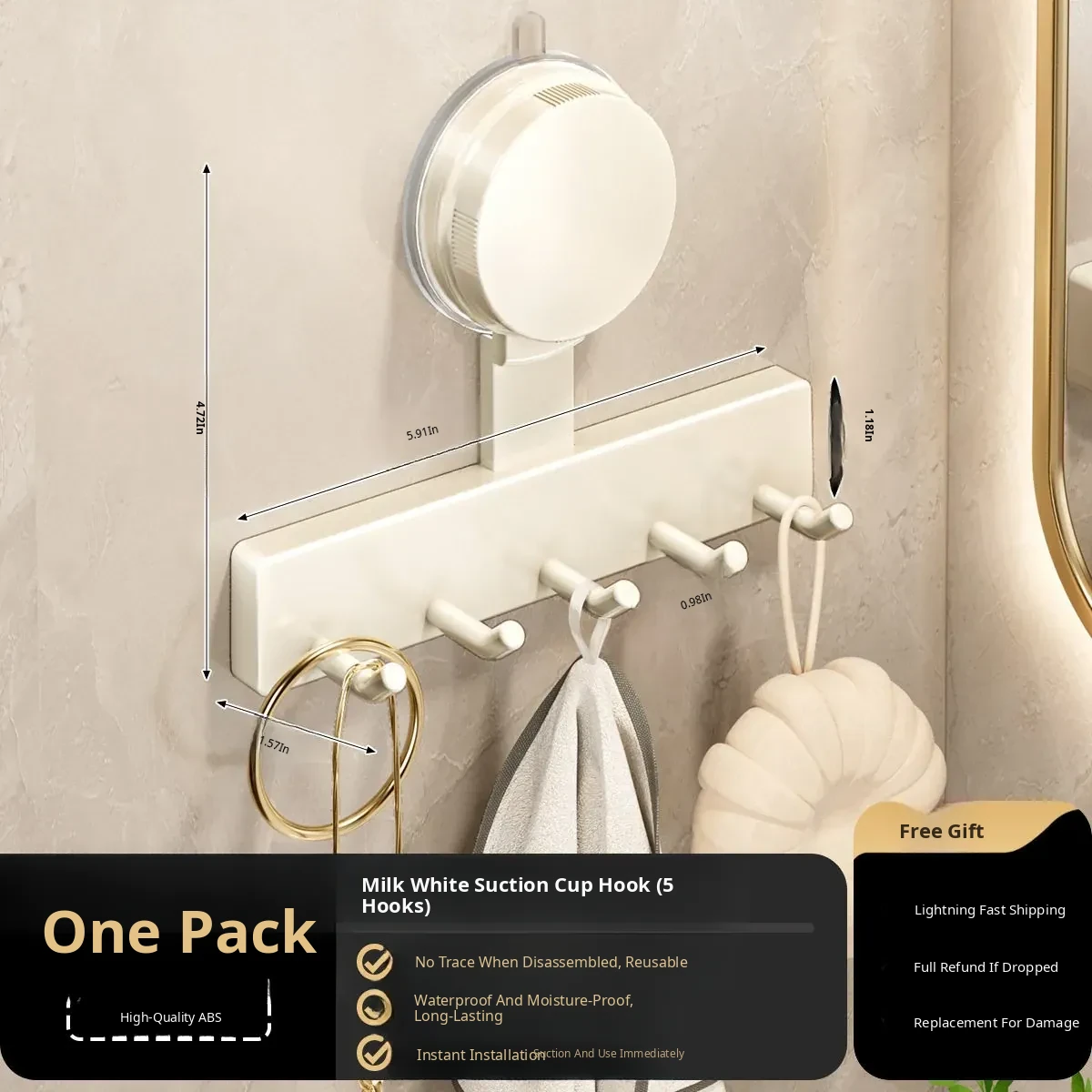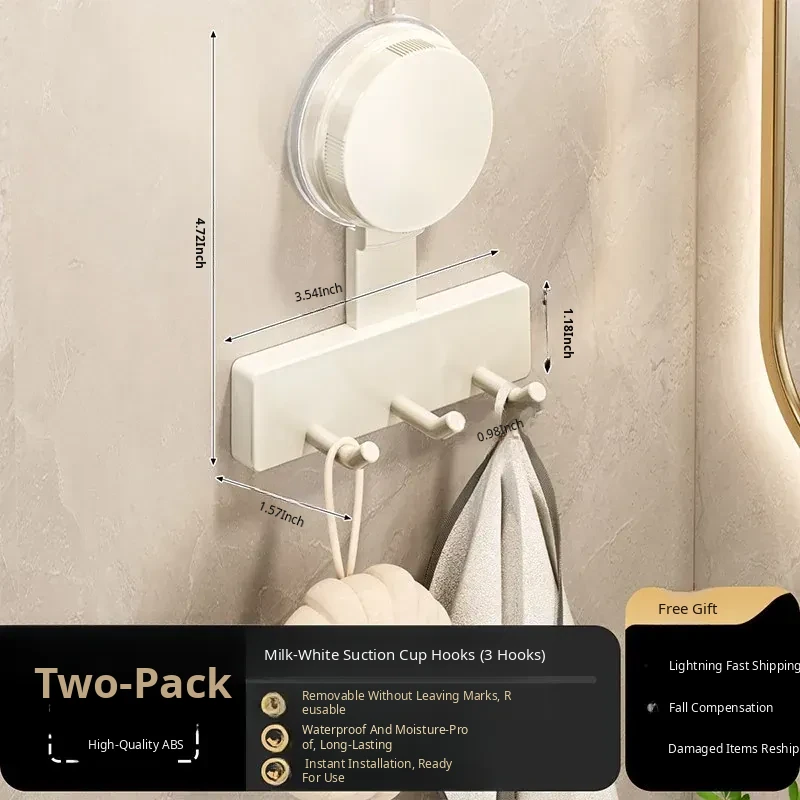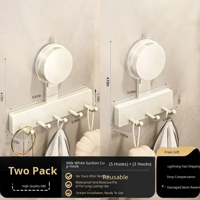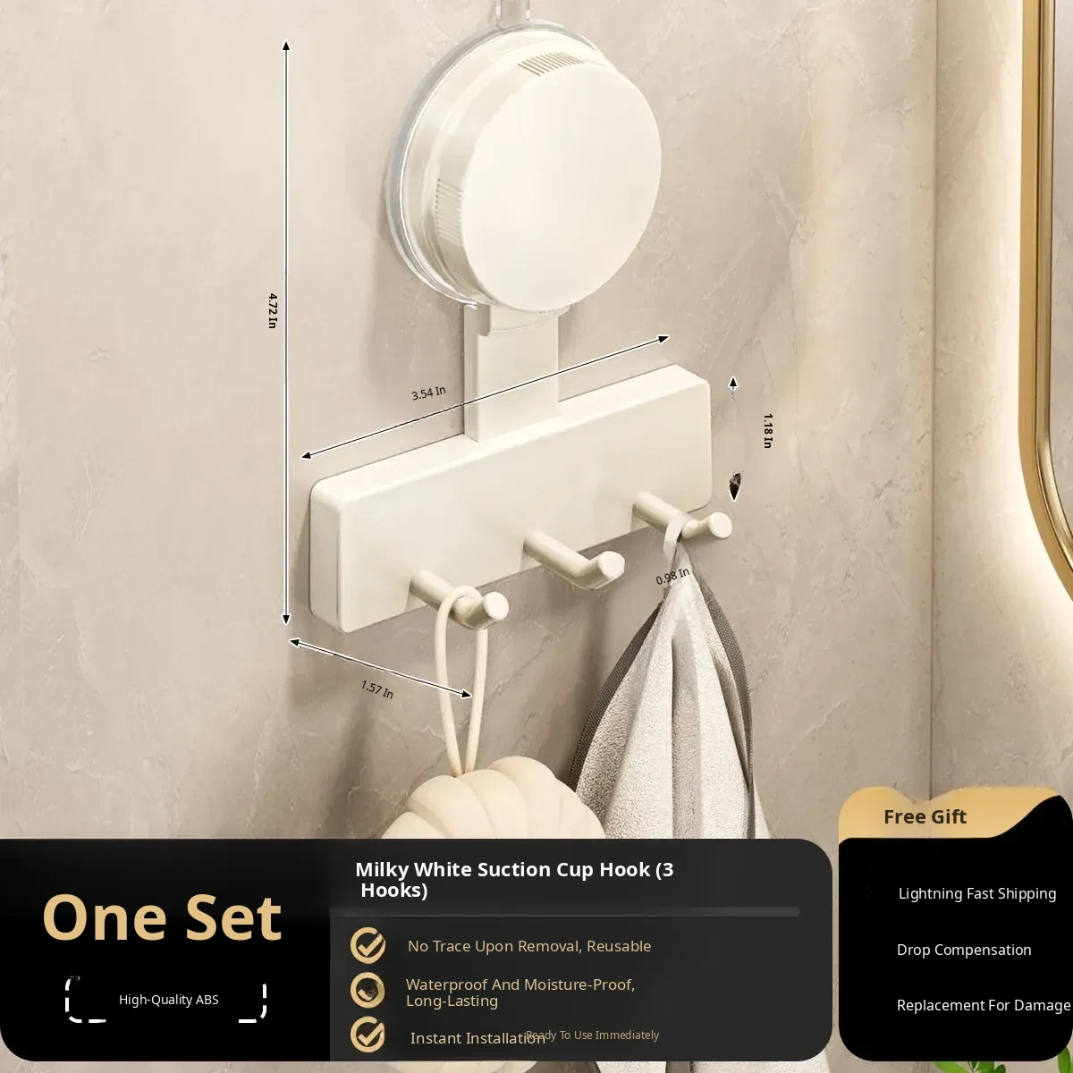 [Milk White Combination Pack] 3 Hooks + 5 Hooks [Suction Cup Installation, Repeated Use]