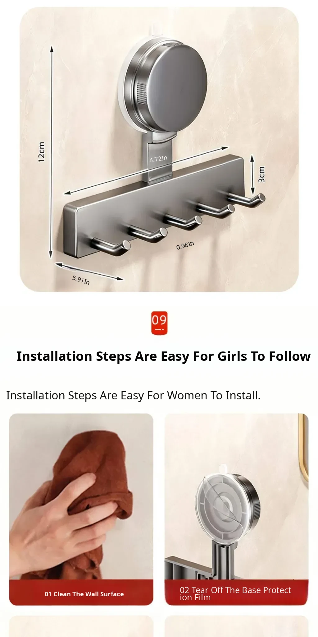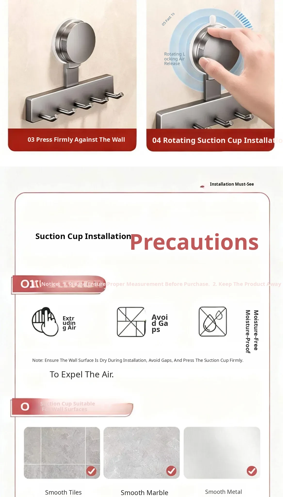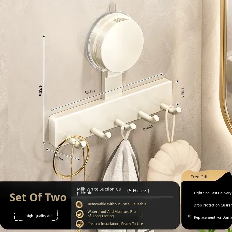 [Milk White Combination Pack] 3 Hooks + 5 Hooks [Suction Cup Installation, Repeated Use]
