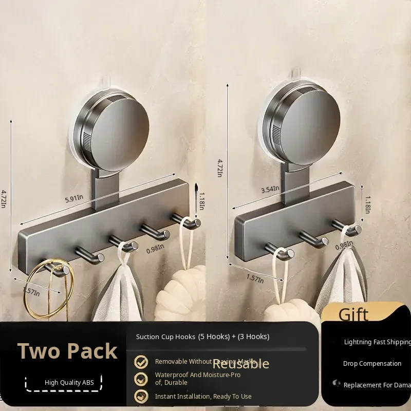 [Gun Gray Combination Pack] 3 Hooks + 5 Hooks [Suction Cup Installation, Repeated Use]