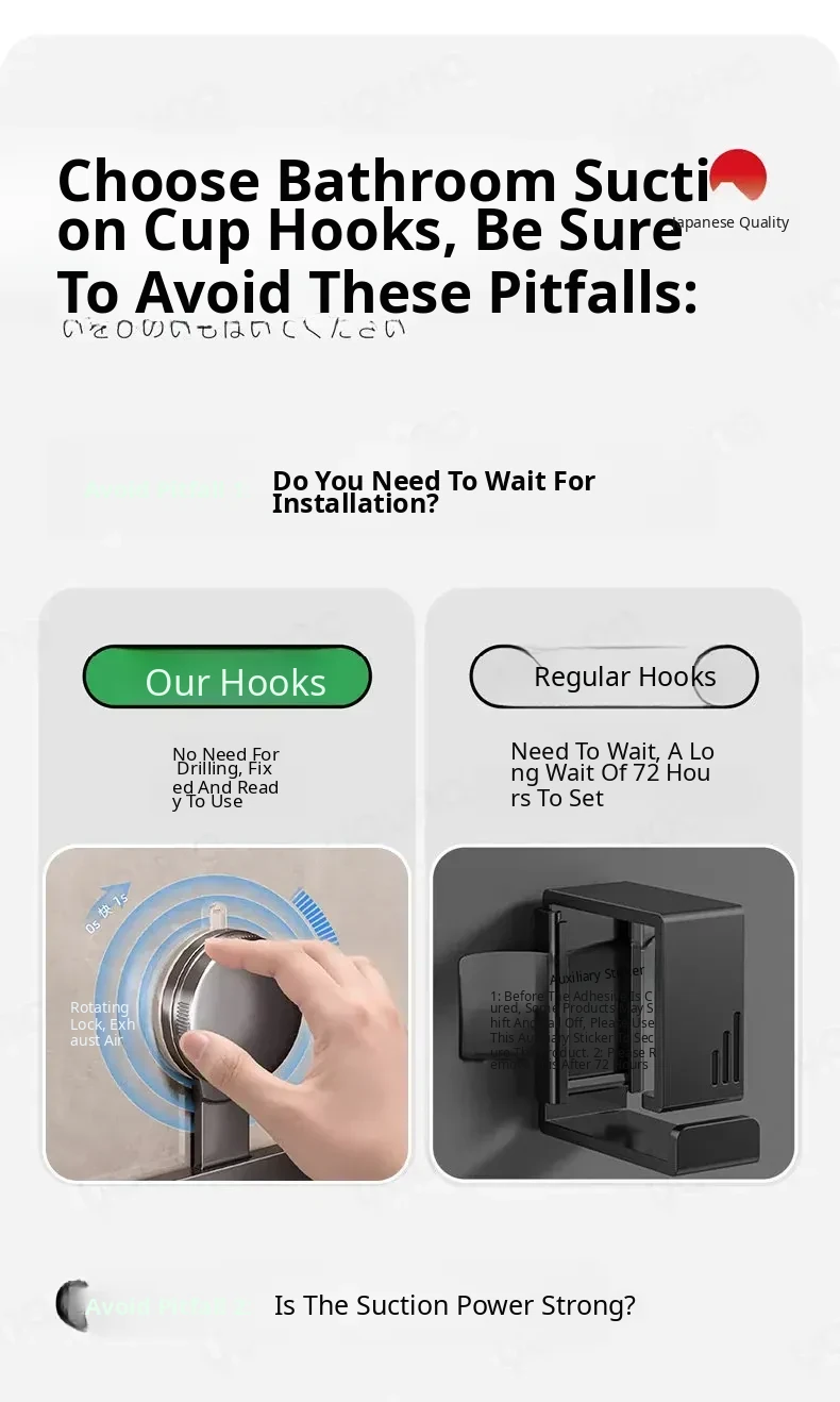 Powerful Suction Hooks for Bathroom - No Drilling Required, Heavy-Duty Wall-Mounted Clothes Hanger and Organizer for Behind Door Use, Perfect for Space-Saving and Easy Access!