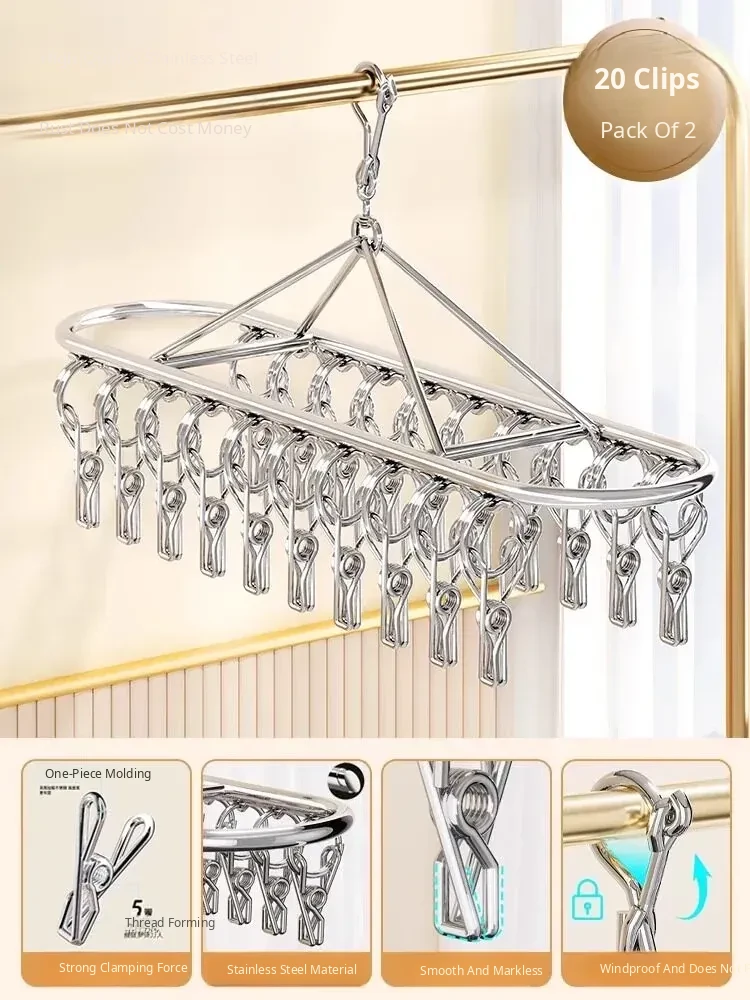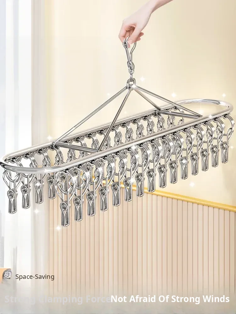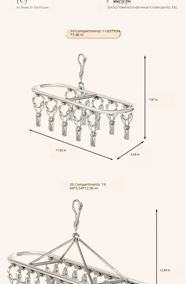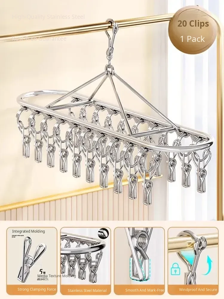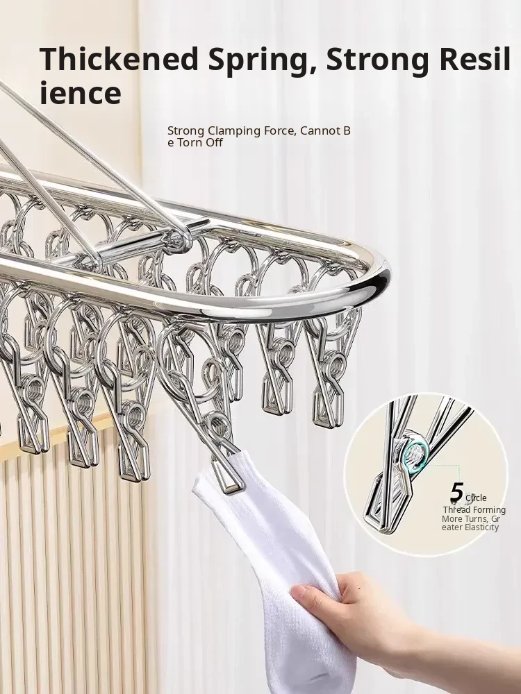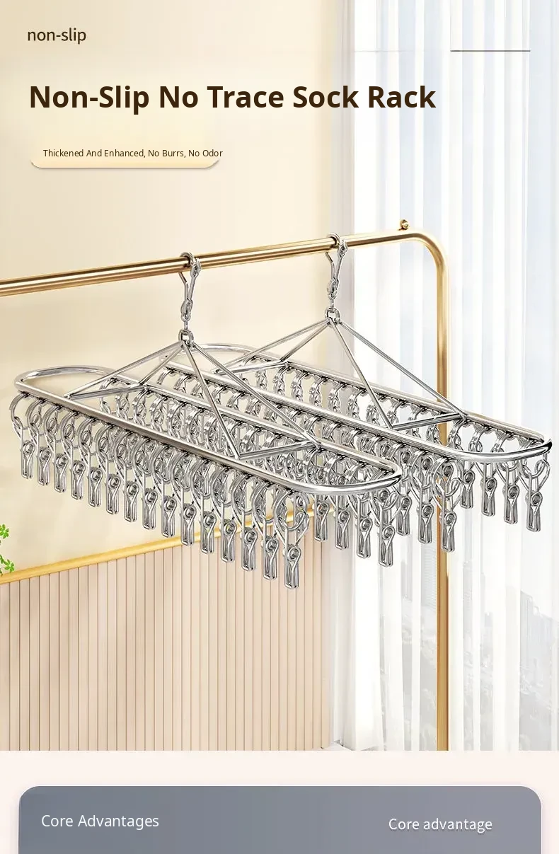 Stainless Steel Sock Drying Rack - Multi-Functional Clip Hanger for Balcony & Home Use, Perfect for Socks, Underwear, and Delicates!