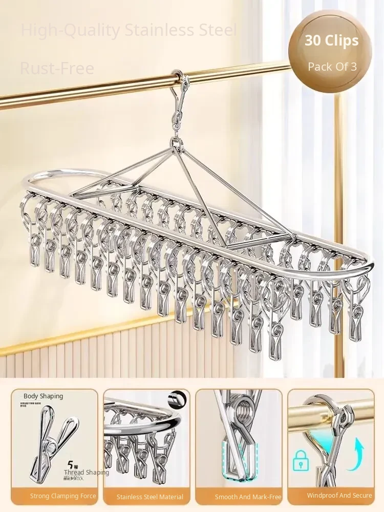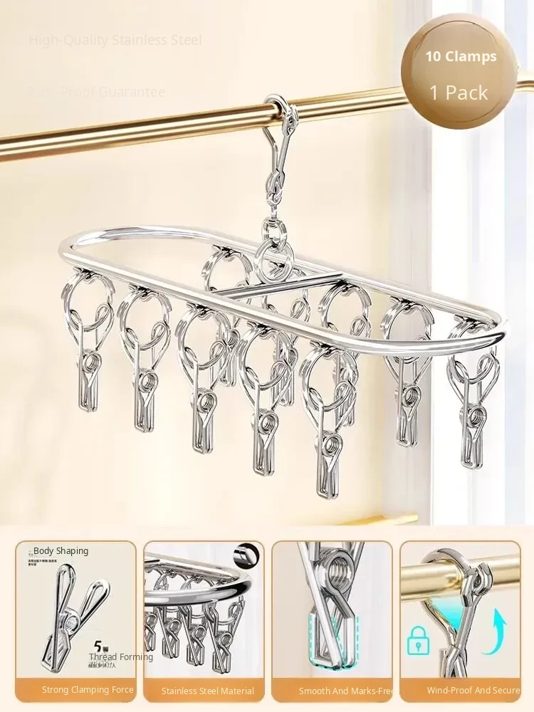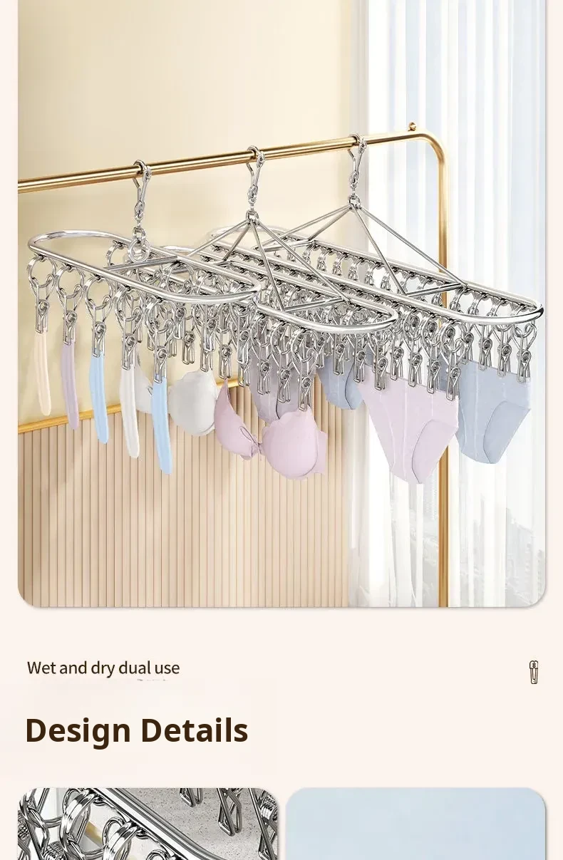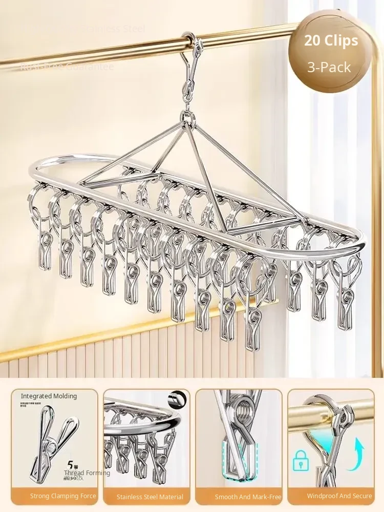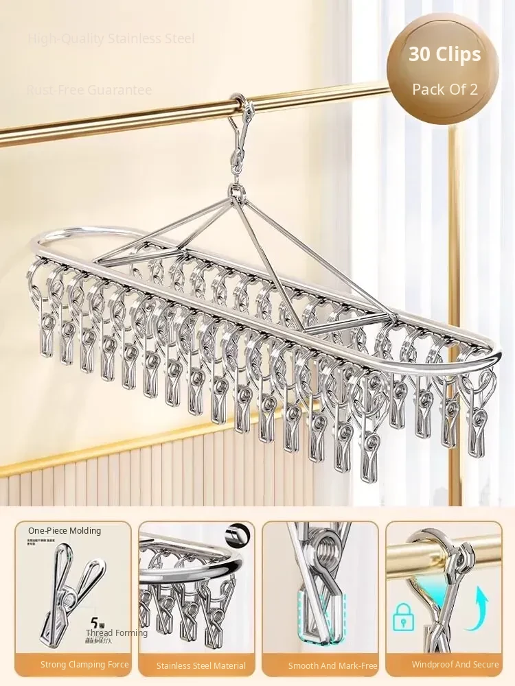 Stainless Steel Sock Drying Rack - Multi-Functional Clip Hanger for Balcony & Home Use, Perfect for Socks, Underwear, and Delicates!
