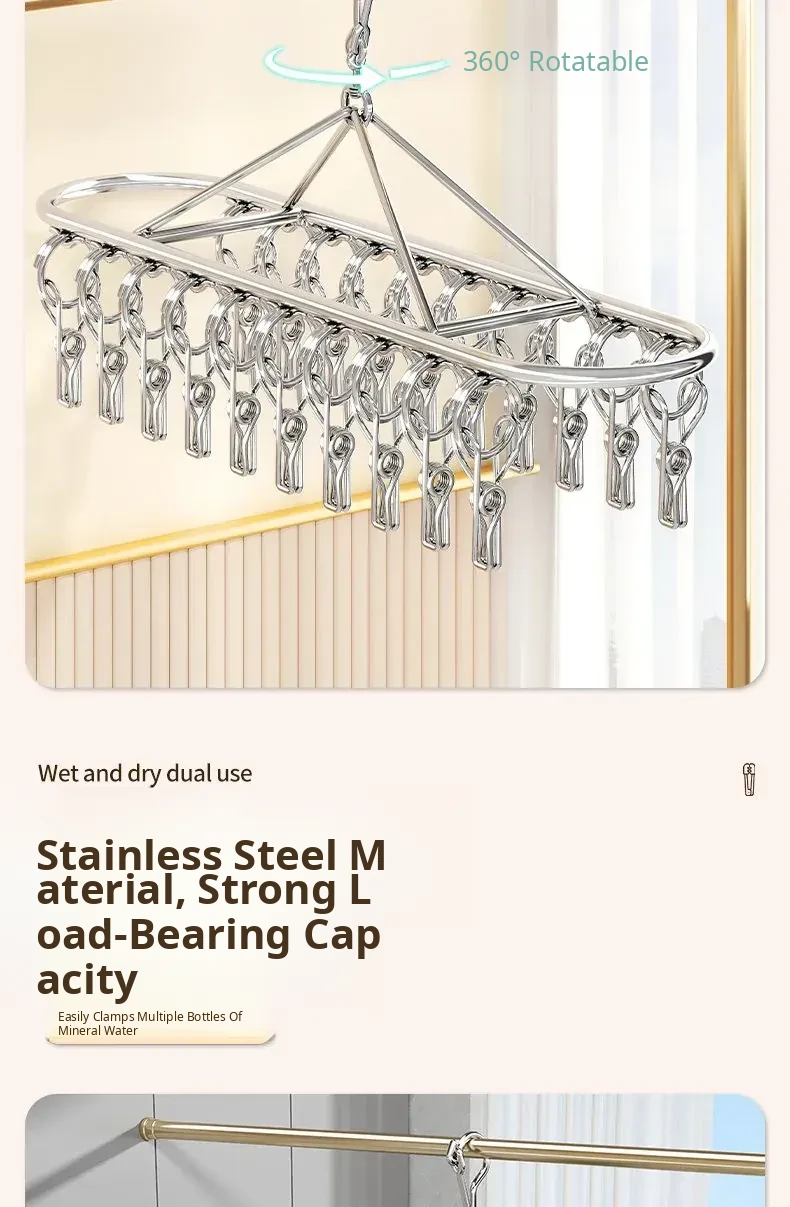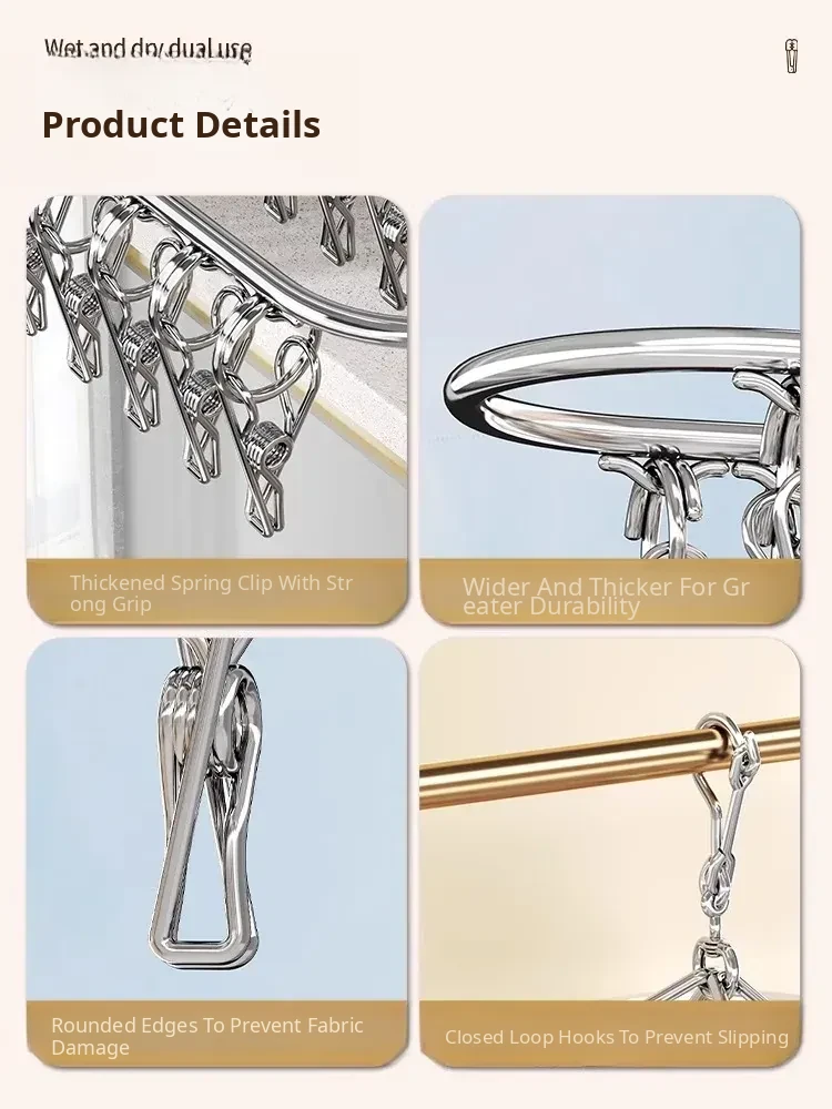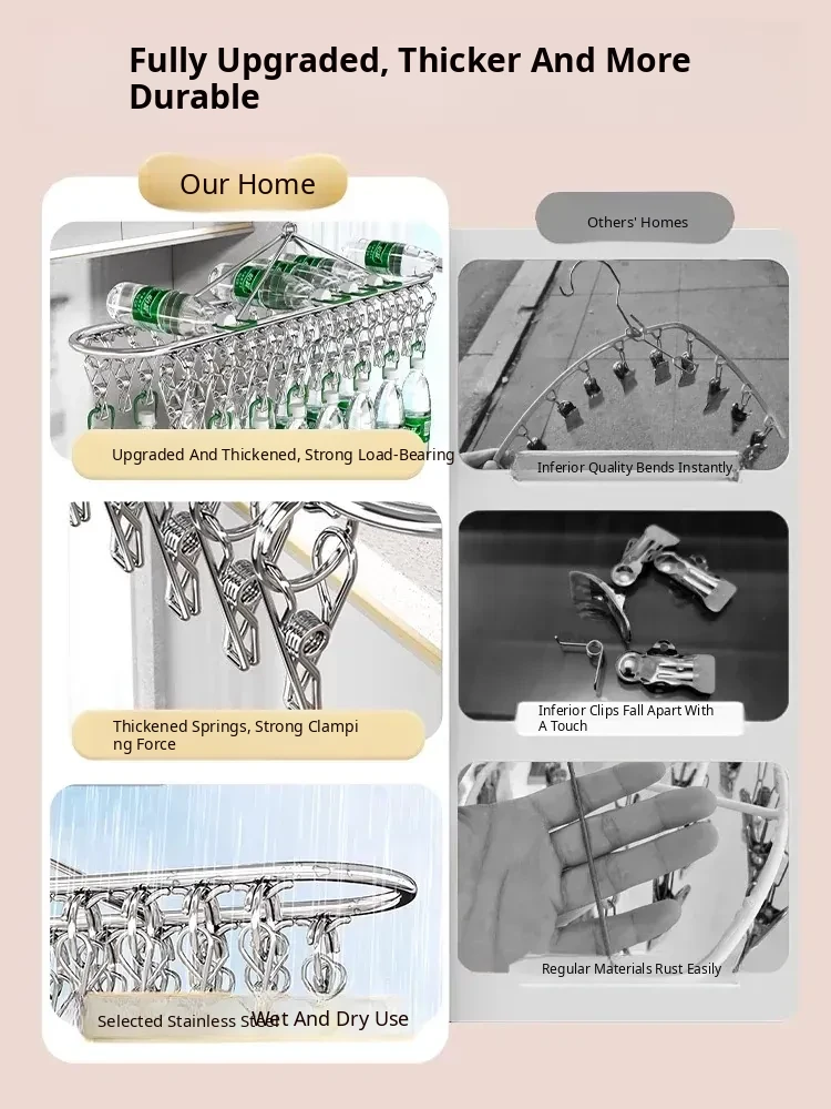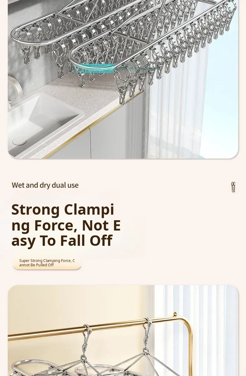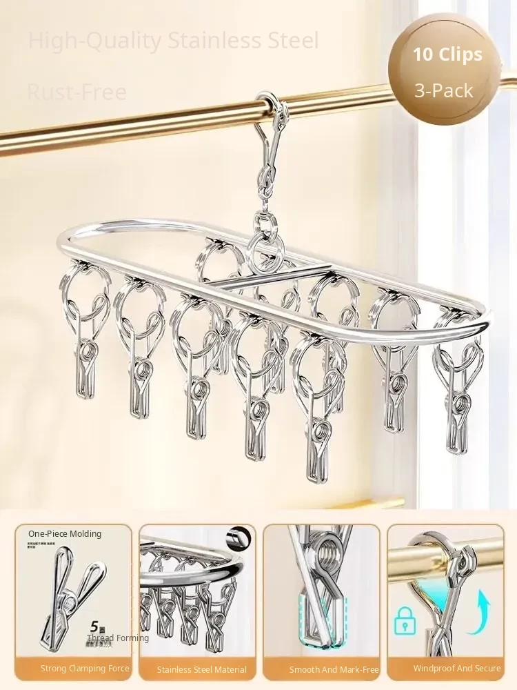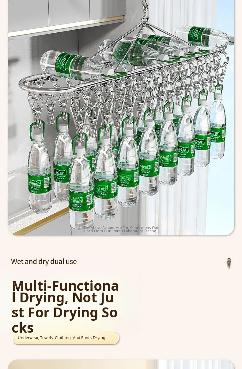 Stainless Steel Sock Drying Rack - Multi-Functional Clip Hanger for Balcony & Home Use, Perfect for Socks, Underwear, and Delicates!