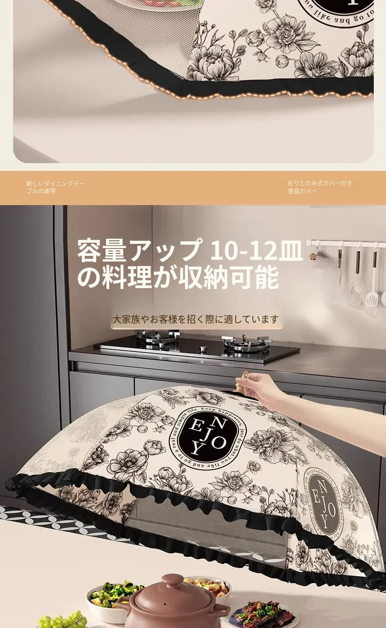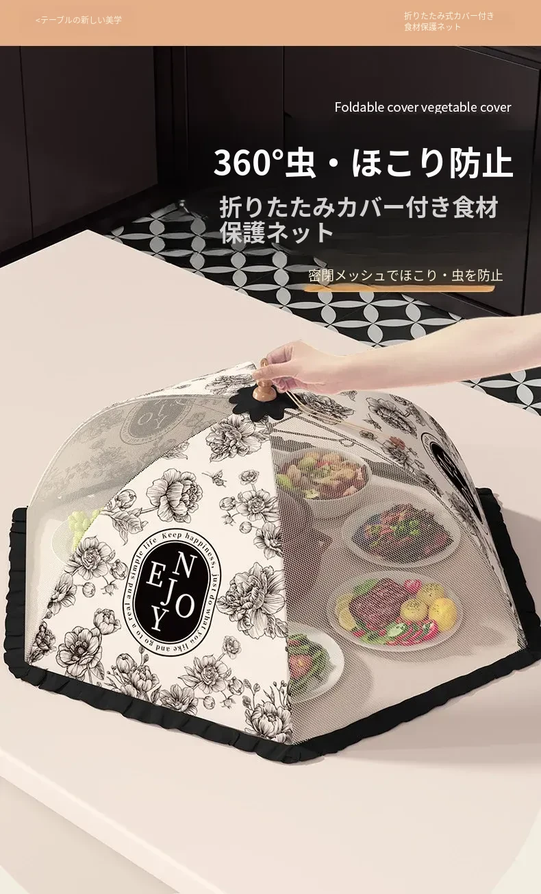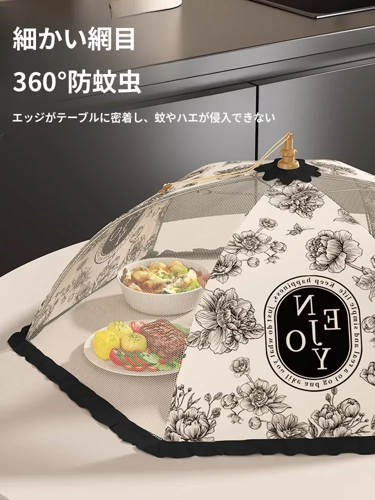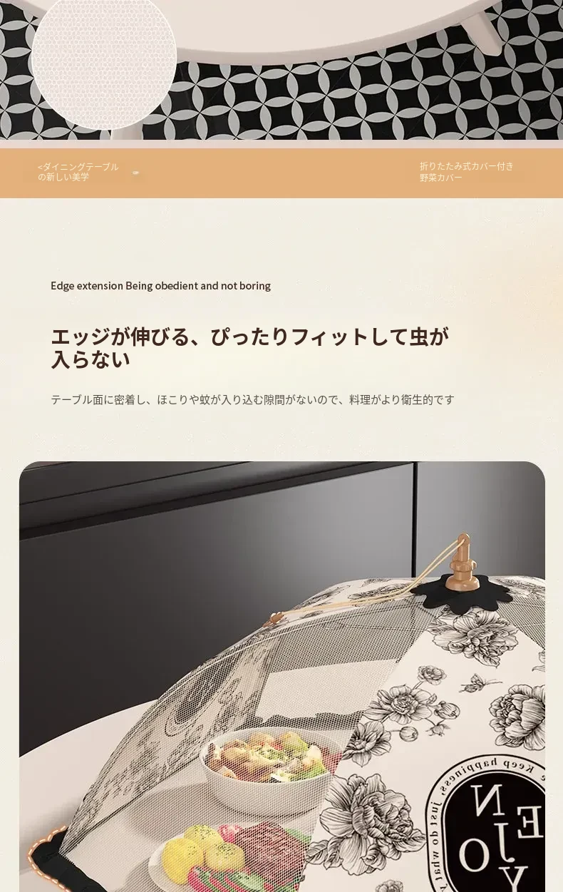 2025年新款!折りたたみ式食品カバー - 残り物をおしゃれに収納!テーブルを守るホコリよけネット。家庭用に最適で、料理の鮮度をキープ!