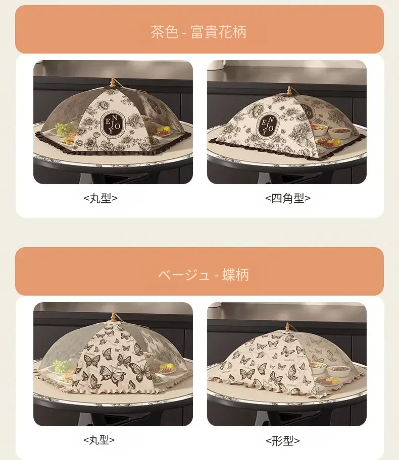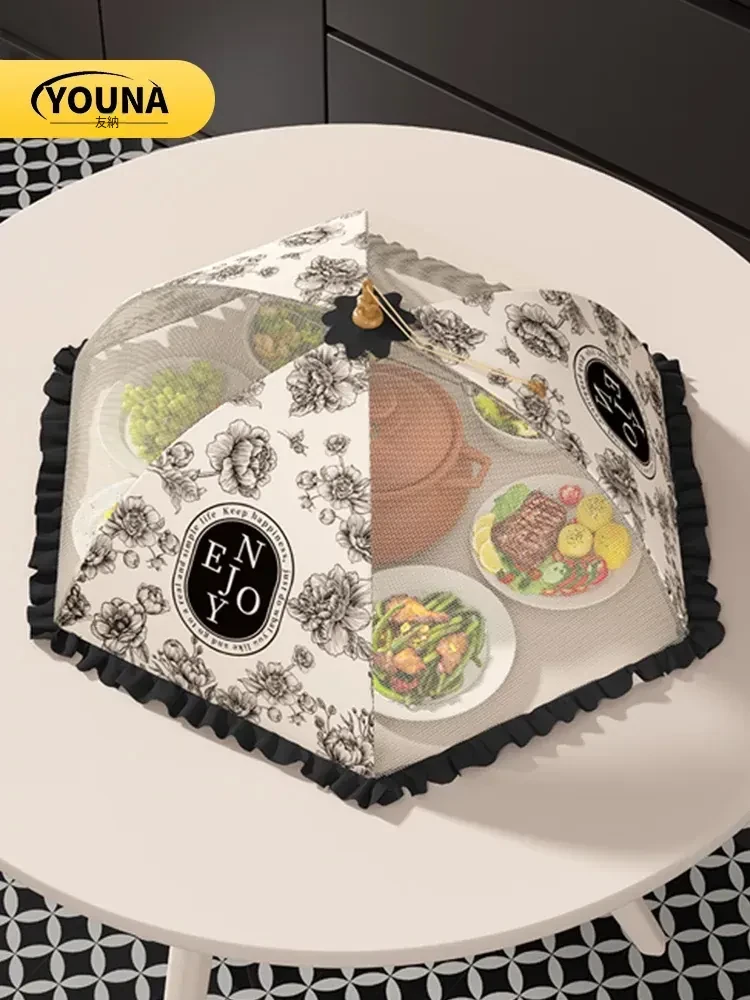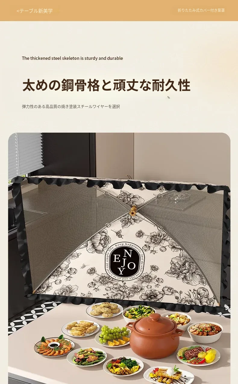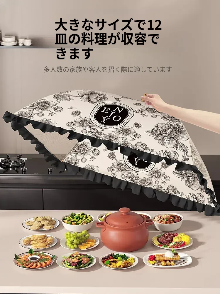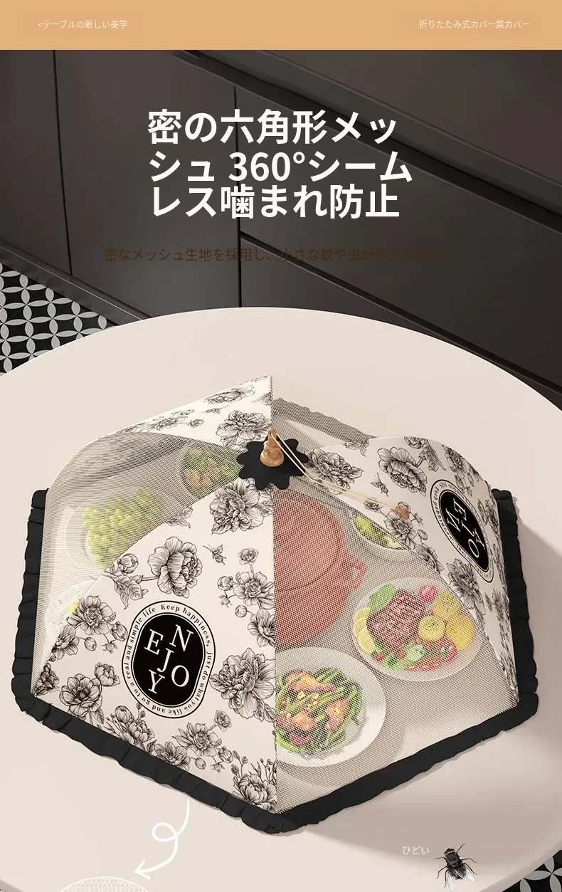 2025年新款!折りたたみ式食品カバー - 残り物をおしゃれに収納!テーブルを守るホコリよけネット。家庭用に最適で、料理の鮮度をキープ!