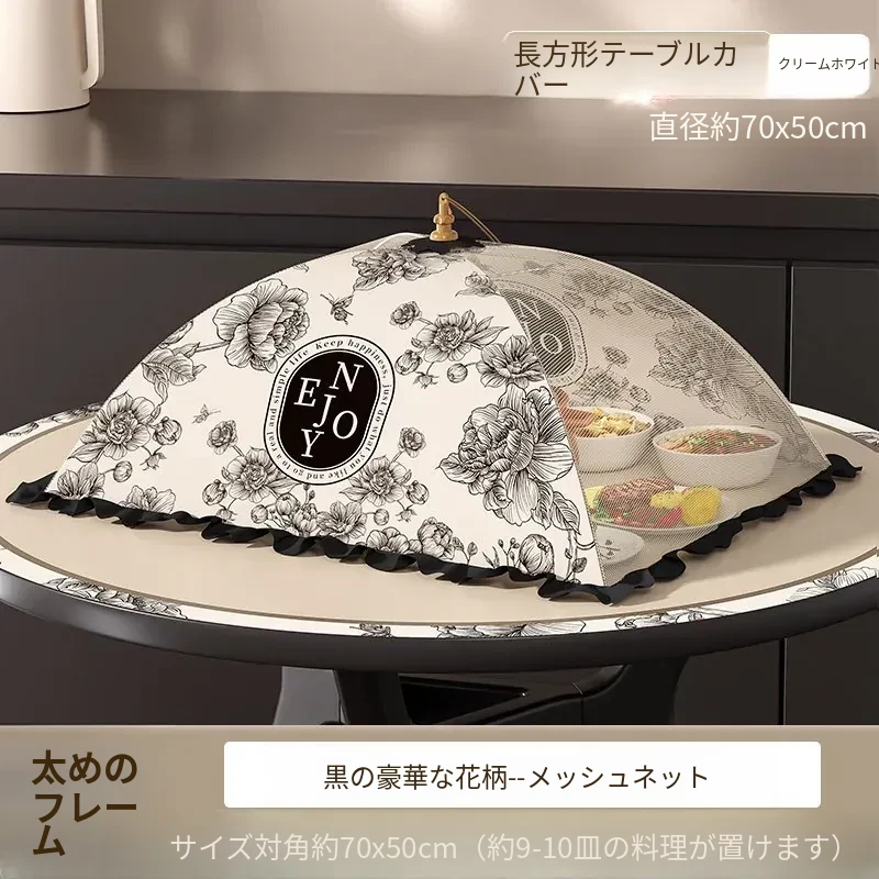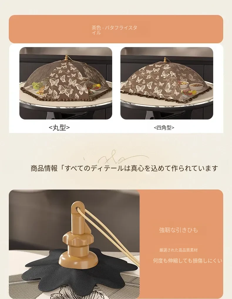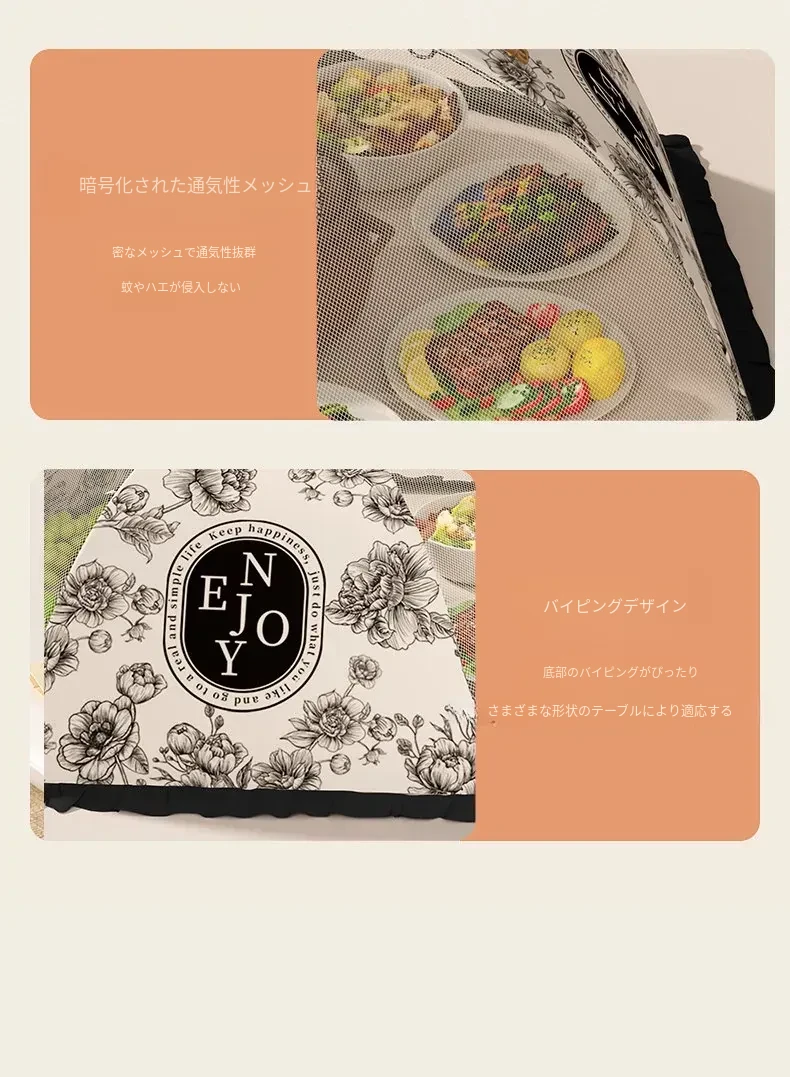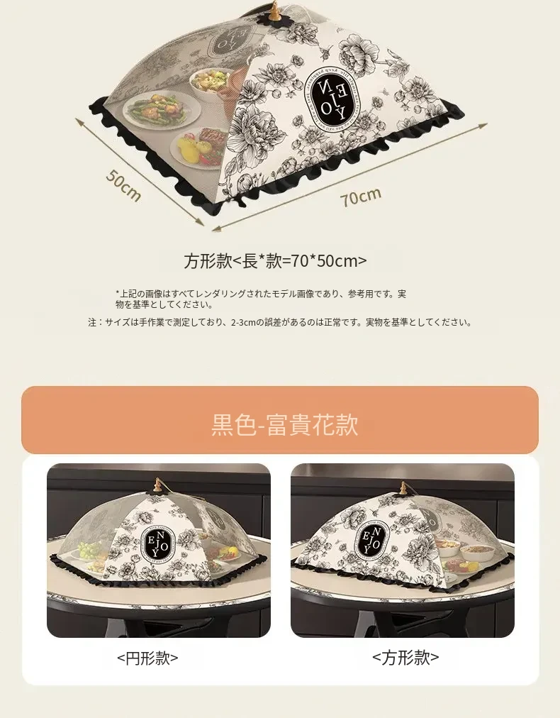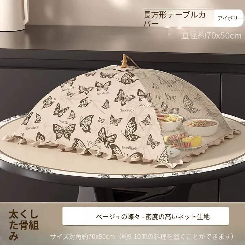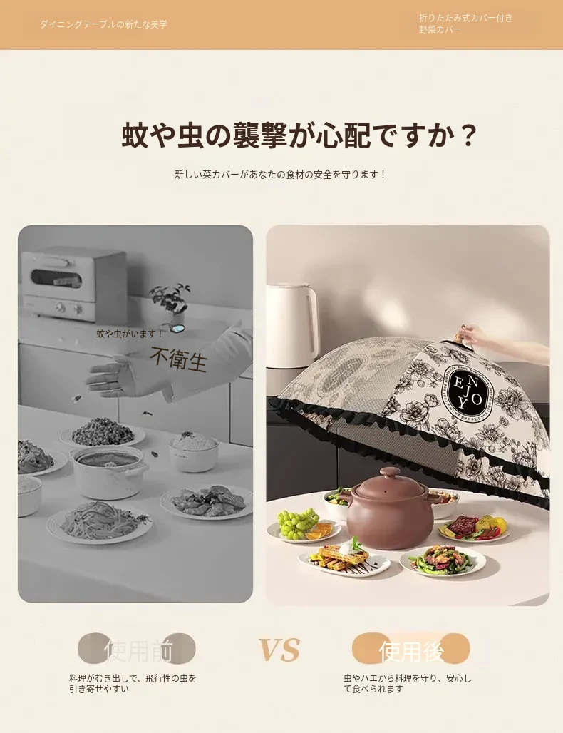 2025年新款!折りたたみ式食品カバー - 残り物をおしゃれに収納!テーブルを守るホコリよけネット。家庭用に最適で、料理の鮮度をキープ!