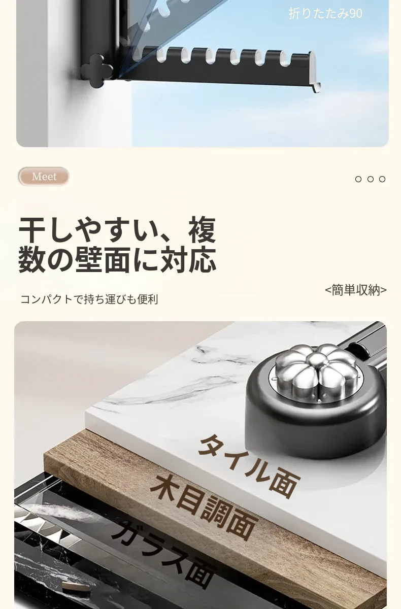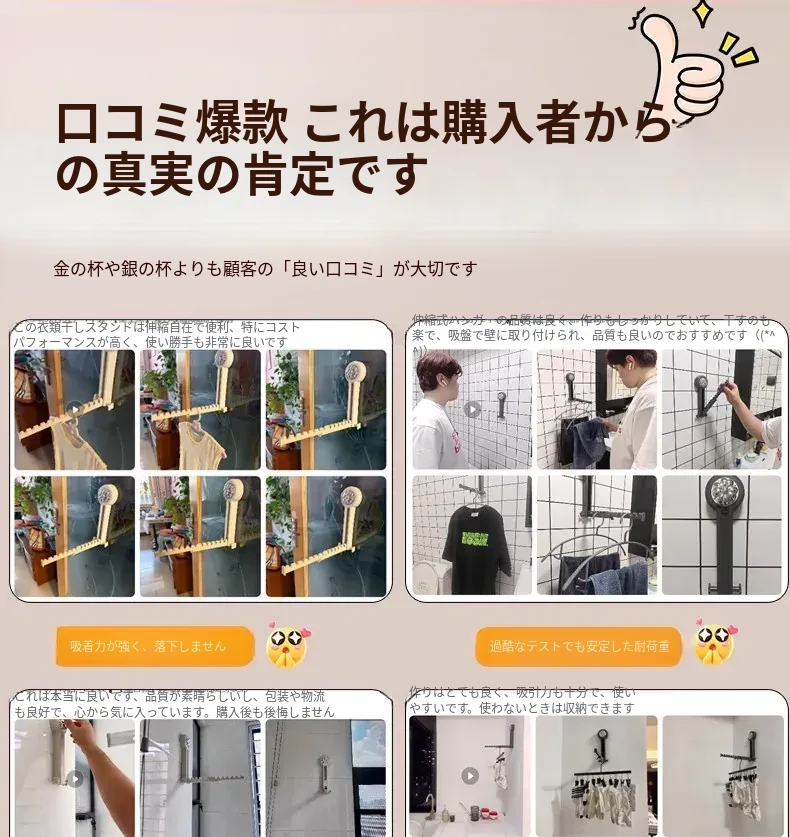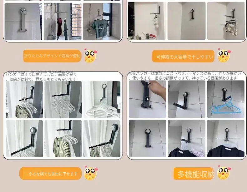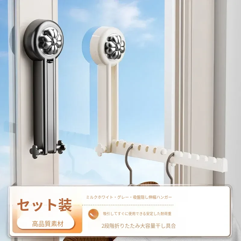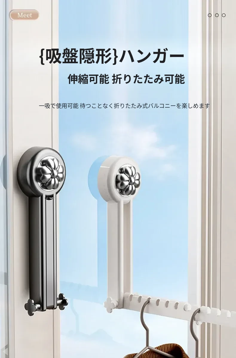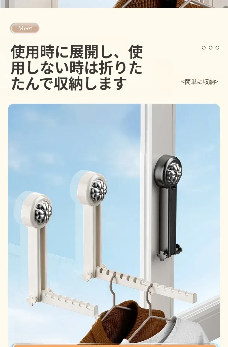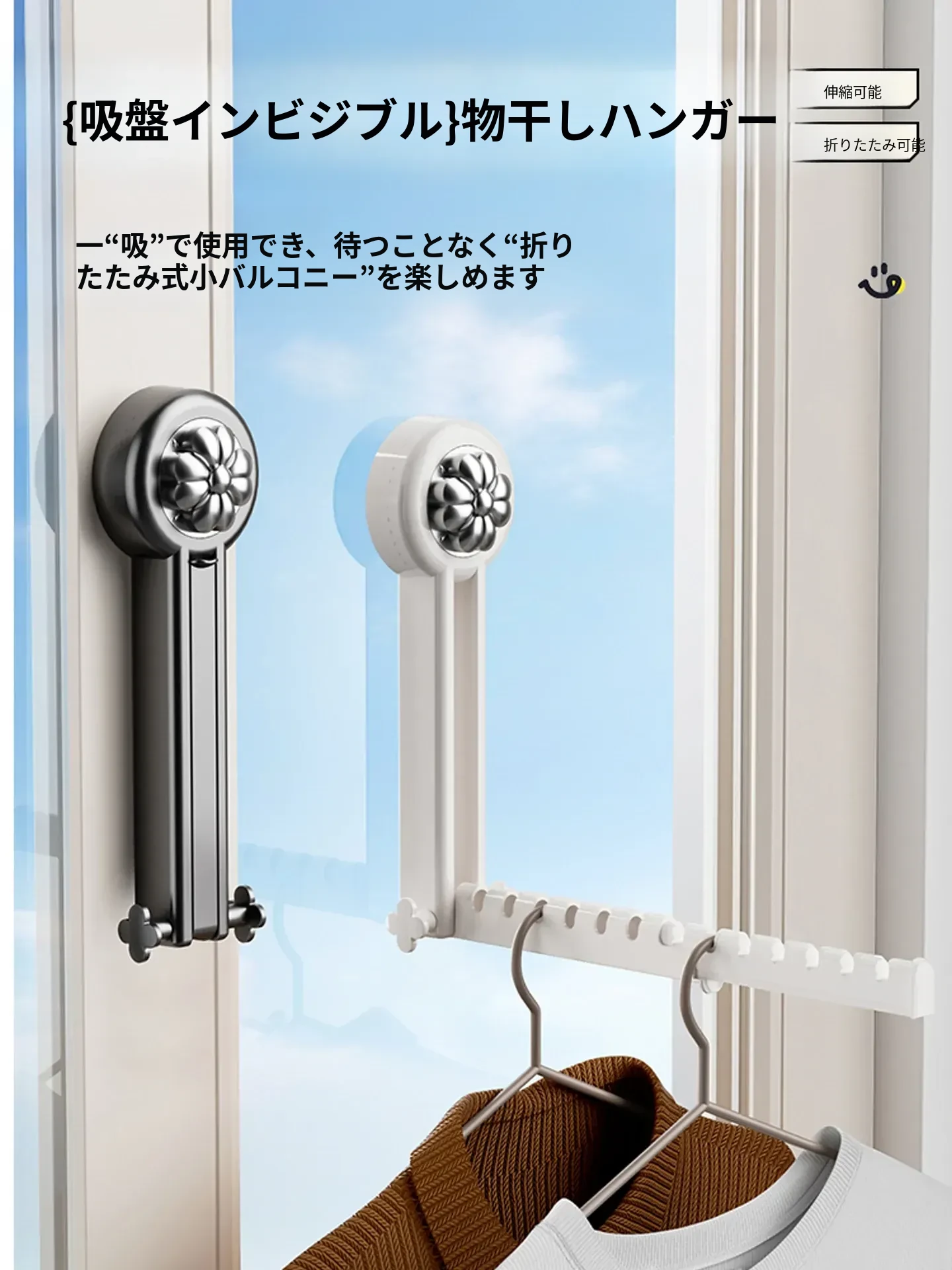 吸盤式の衣類干しラック - バルコニーや窓辺に最適!折りたたみ可能で旅行や寮にも便利。壁掛け式の伸縮可能な衣類乾燥神器で、スペースを有効活用しながら素早く乾燥!