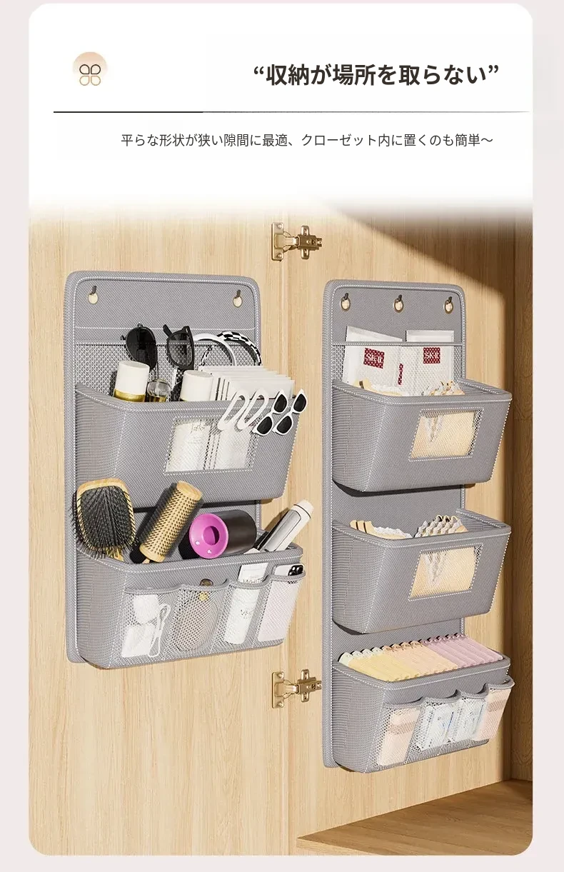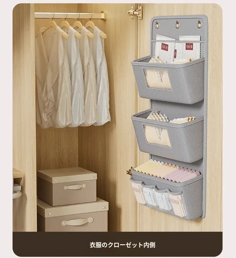 【2個セット】米杏色2層+星空グレー3層【肌に優しく無臭で洗える】(強力粘着フック*5付き)