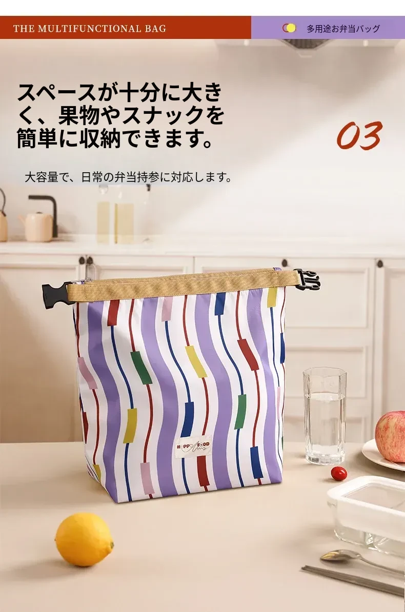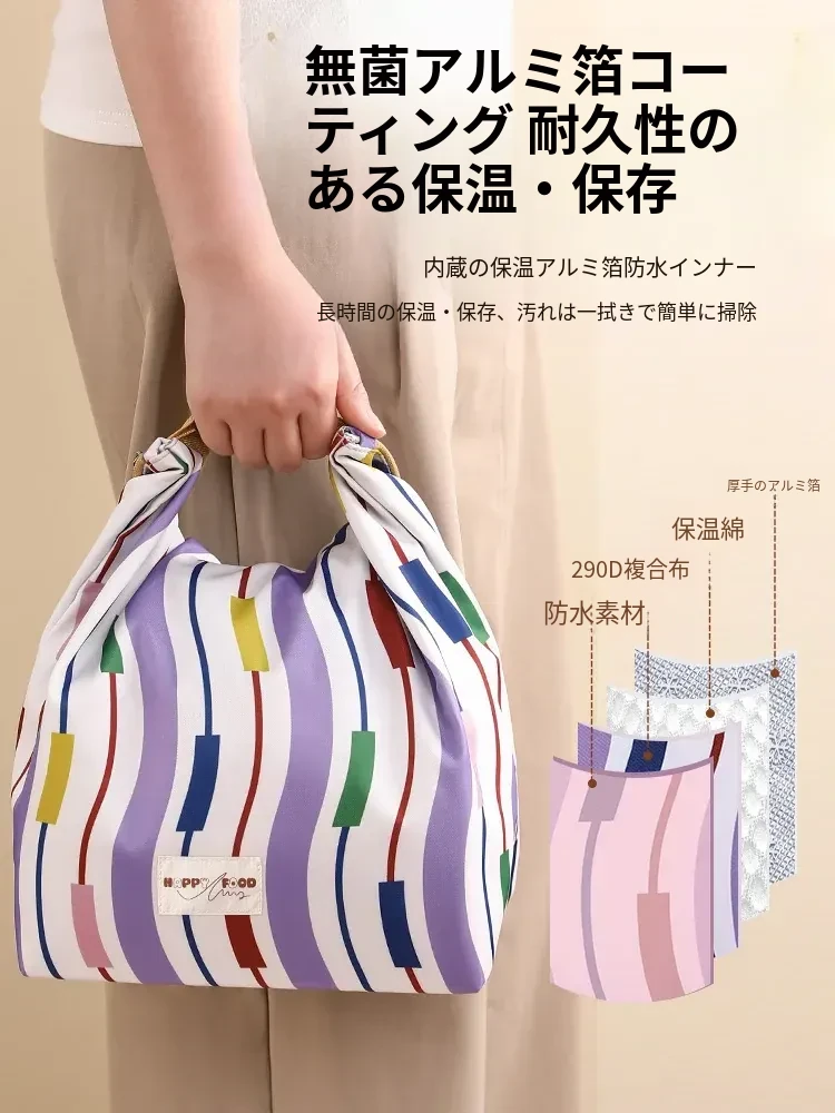 小学生向け保温手提ランチバッグ - 通勤・通学に最適な防水・携帯便利なお弁当袋!おしゃれで実用的、毎日のランチタイムを楽しもう!