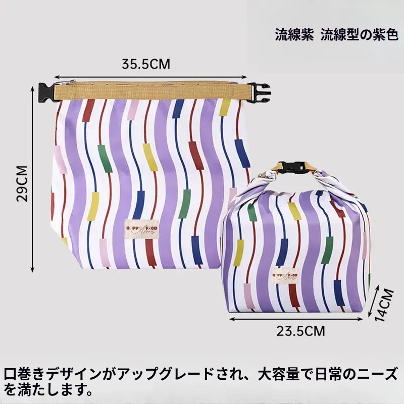 流線形パープル⭐ロール口式大容量/厚手アルミ箔/長持ち保温
