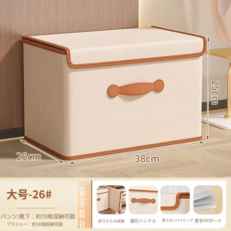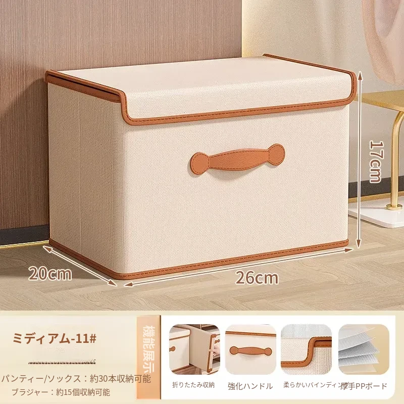 中型【肌触りの良い生地|革製ハンドル】約30枚のパンツ/靴下が収納可能