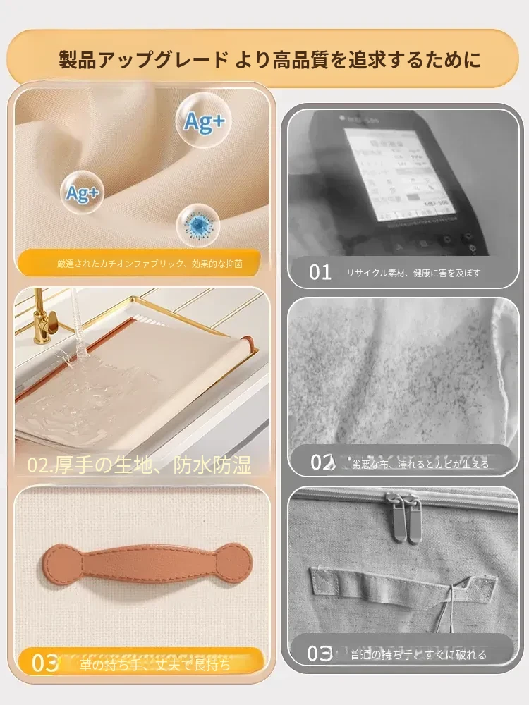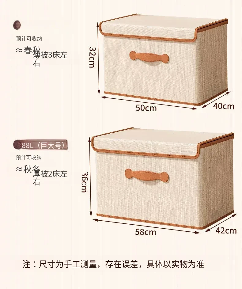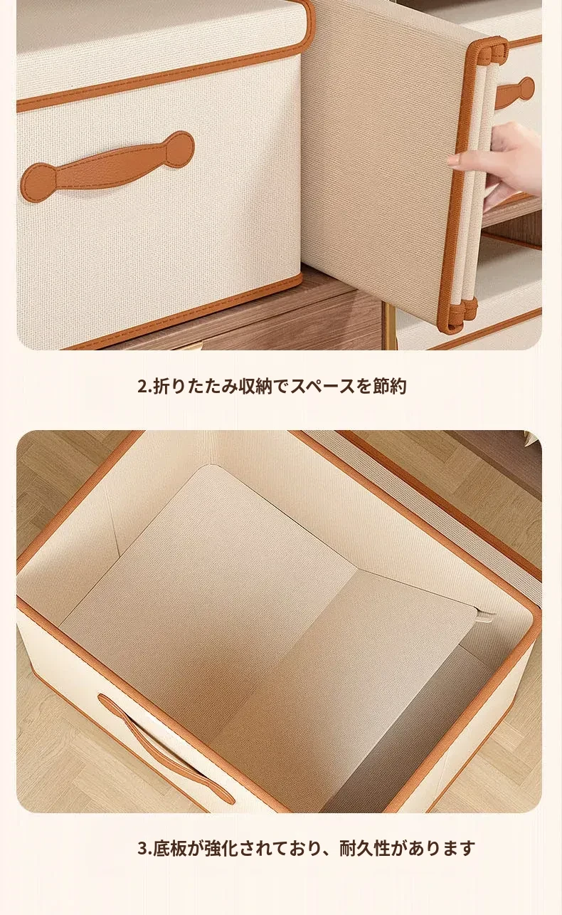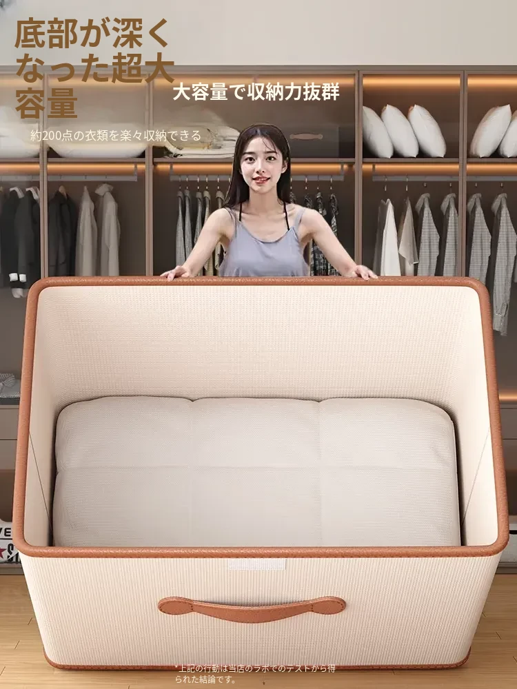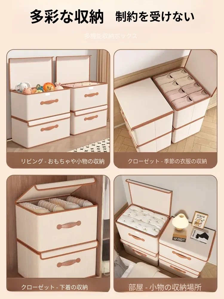 大容量・折りたたみ式布製収納ボックス!衣類・布団・おもちゃをすっきり整理できる、蓋付きの便利な収納箱。お部屋を美しく保ち、スッキリとした空間を実現します!