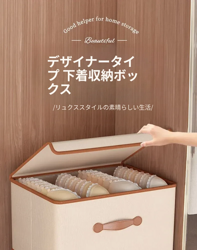 大サイズ【肌触りの良い生地|革製ハンドル】約30個のブラジャーが収納可能