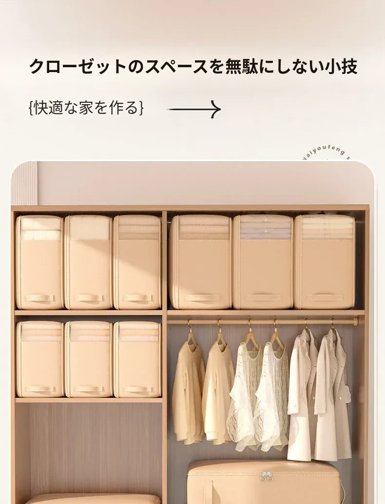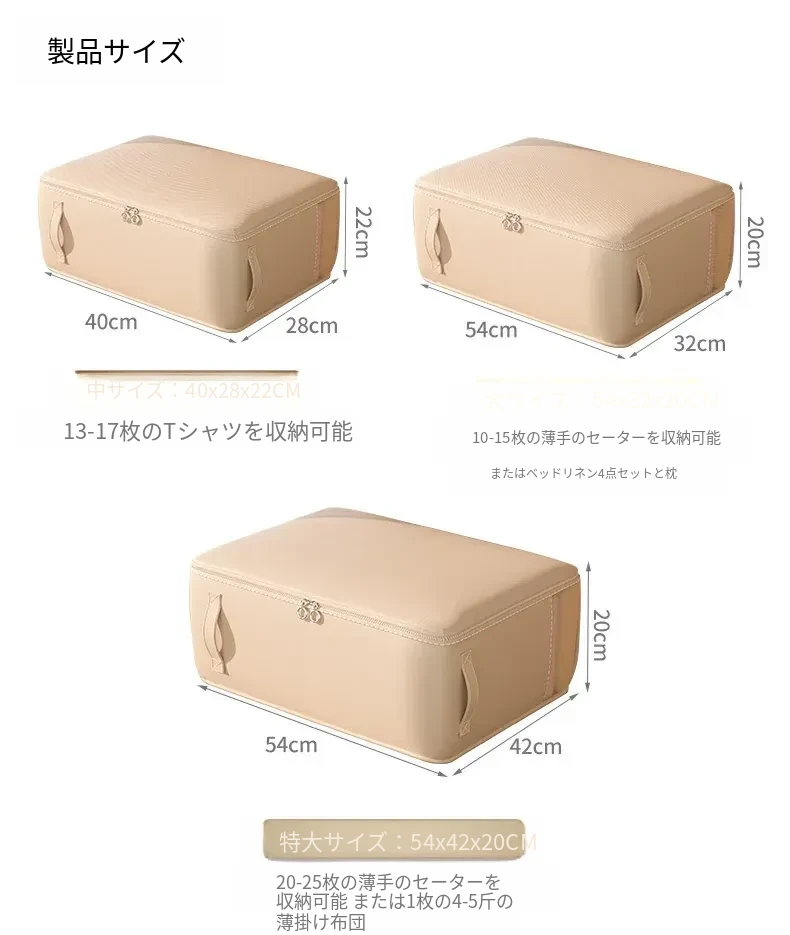 大サイズ⭐ベージュ【3-5斤の夏用布団または45着の衣類を収納】
