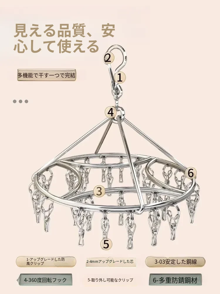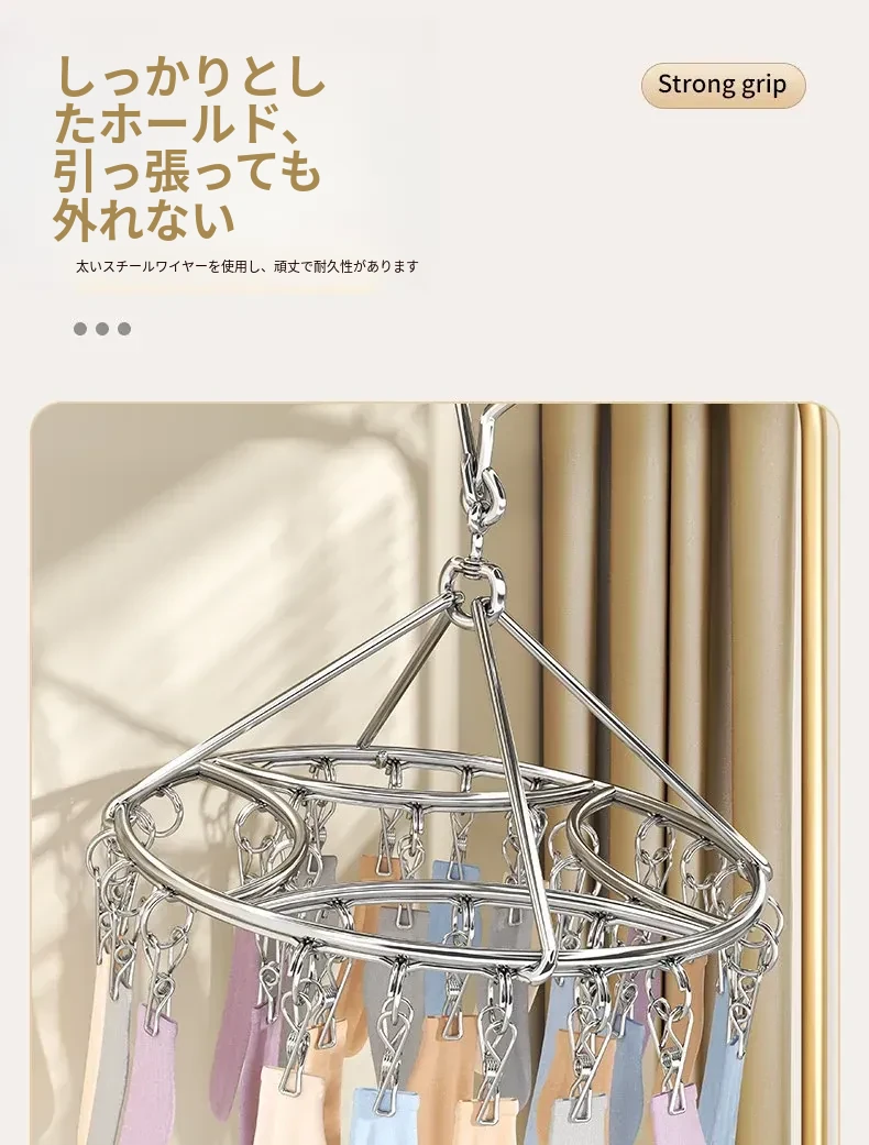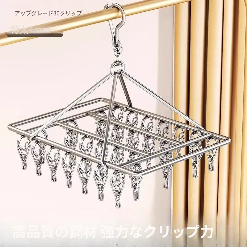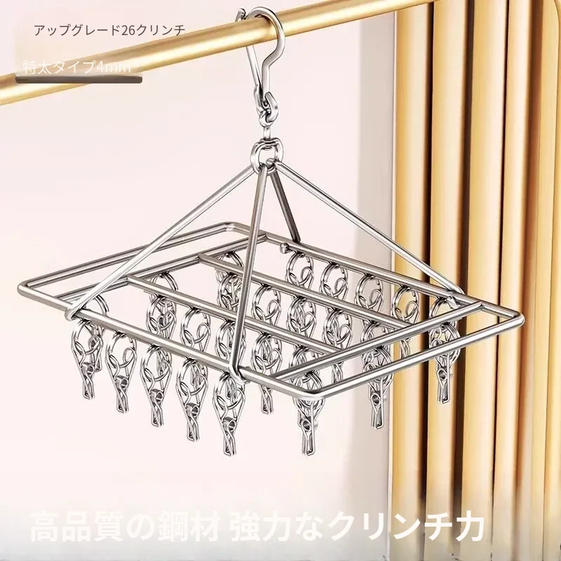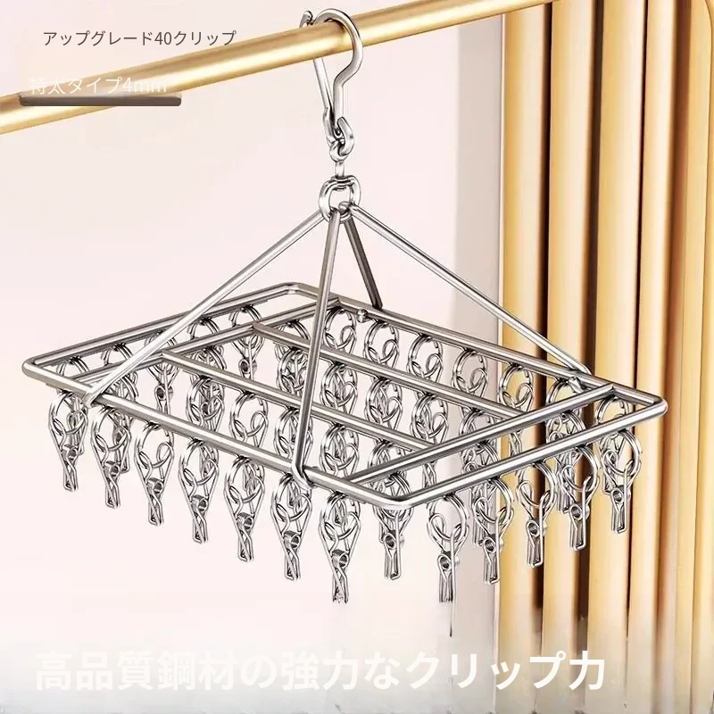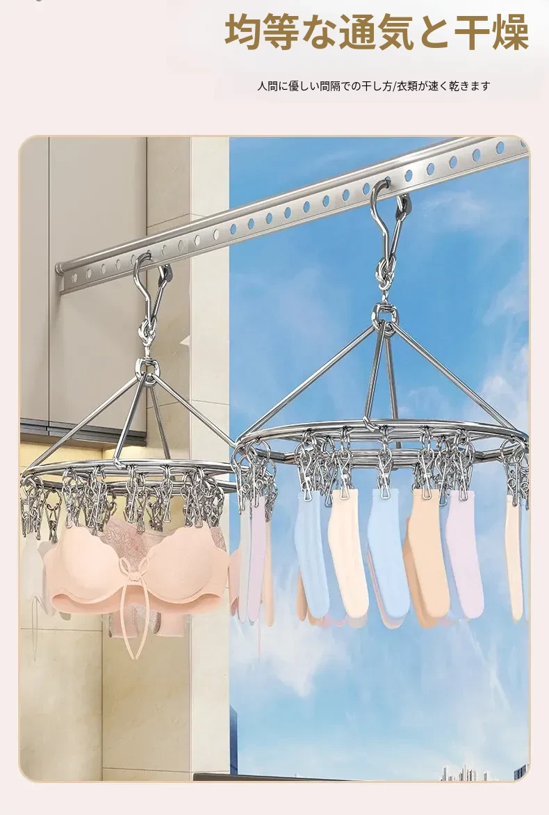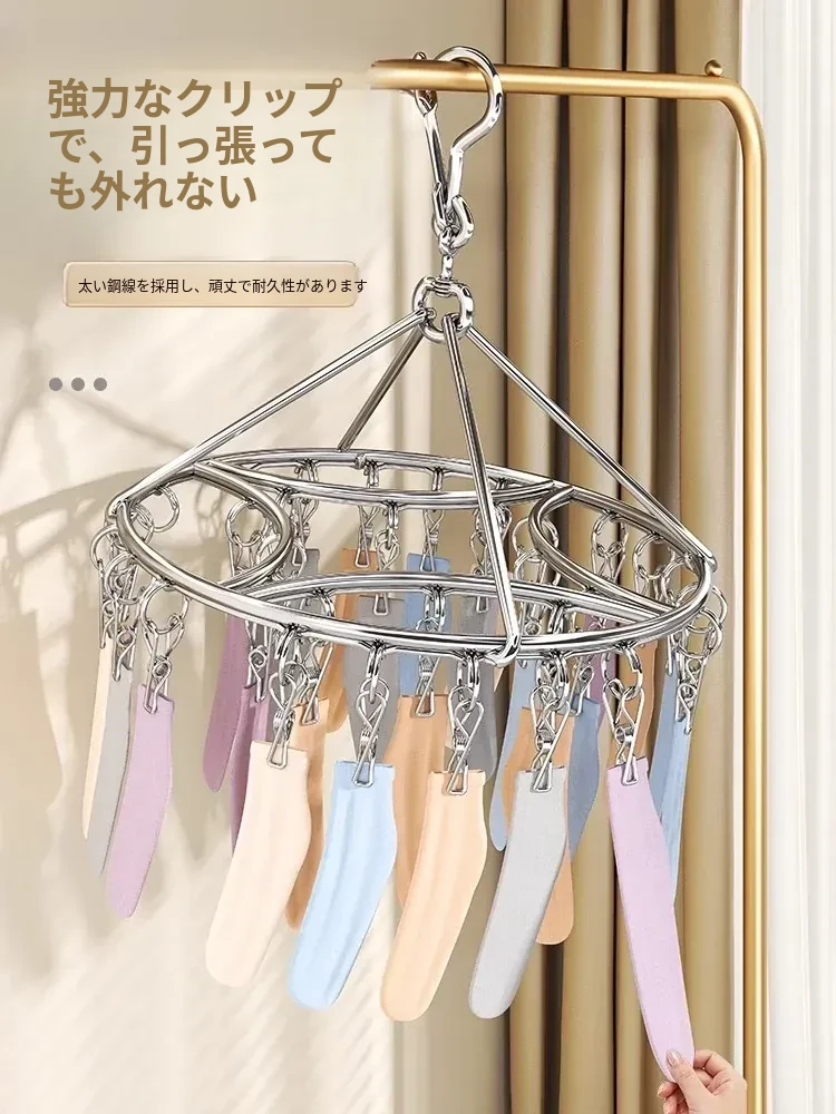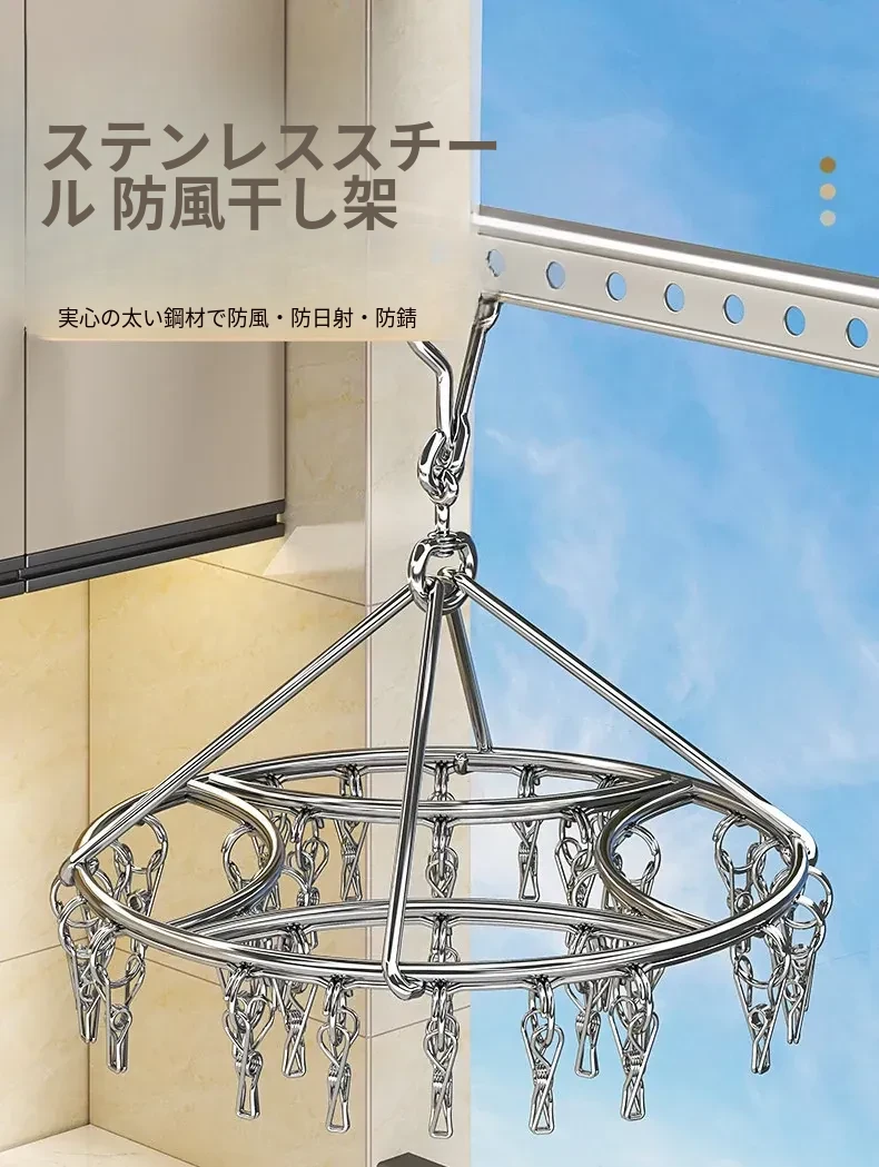 多機能ステンレス製物干しハンガー - 風に強く、バルコニーでの下着や靴下の干しに最適!お家での洗濯がもっと楽しくなる神器!