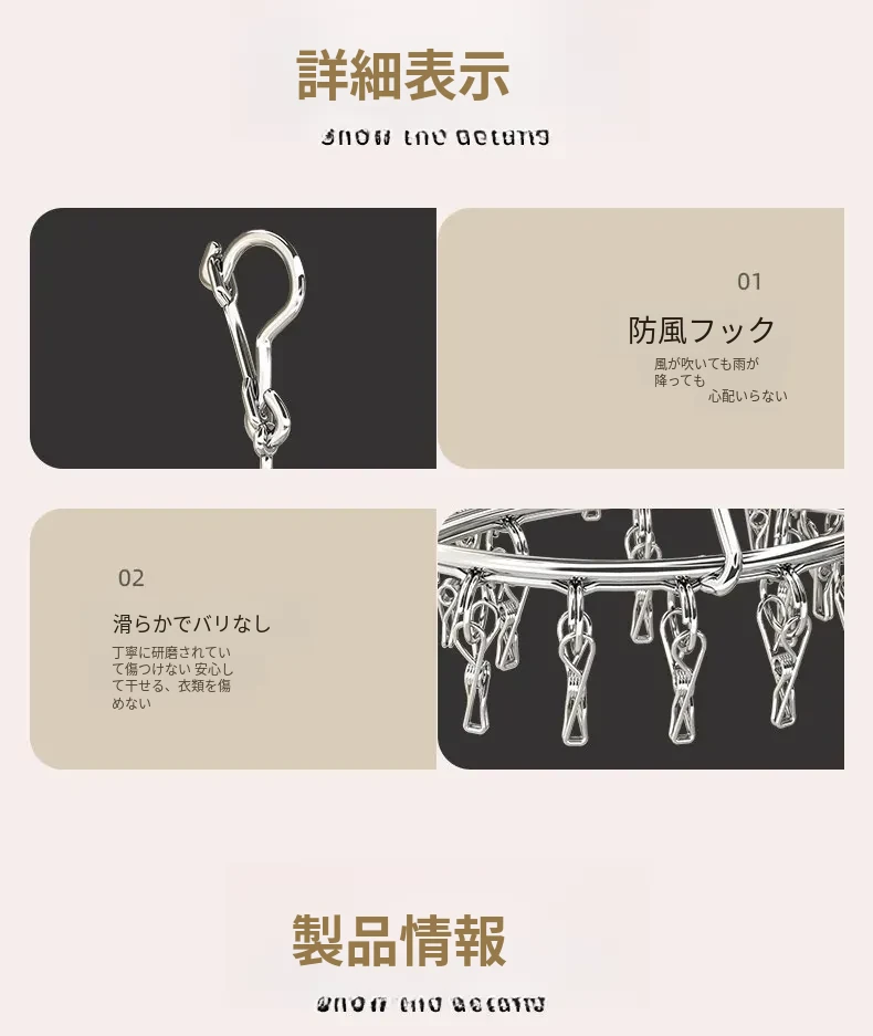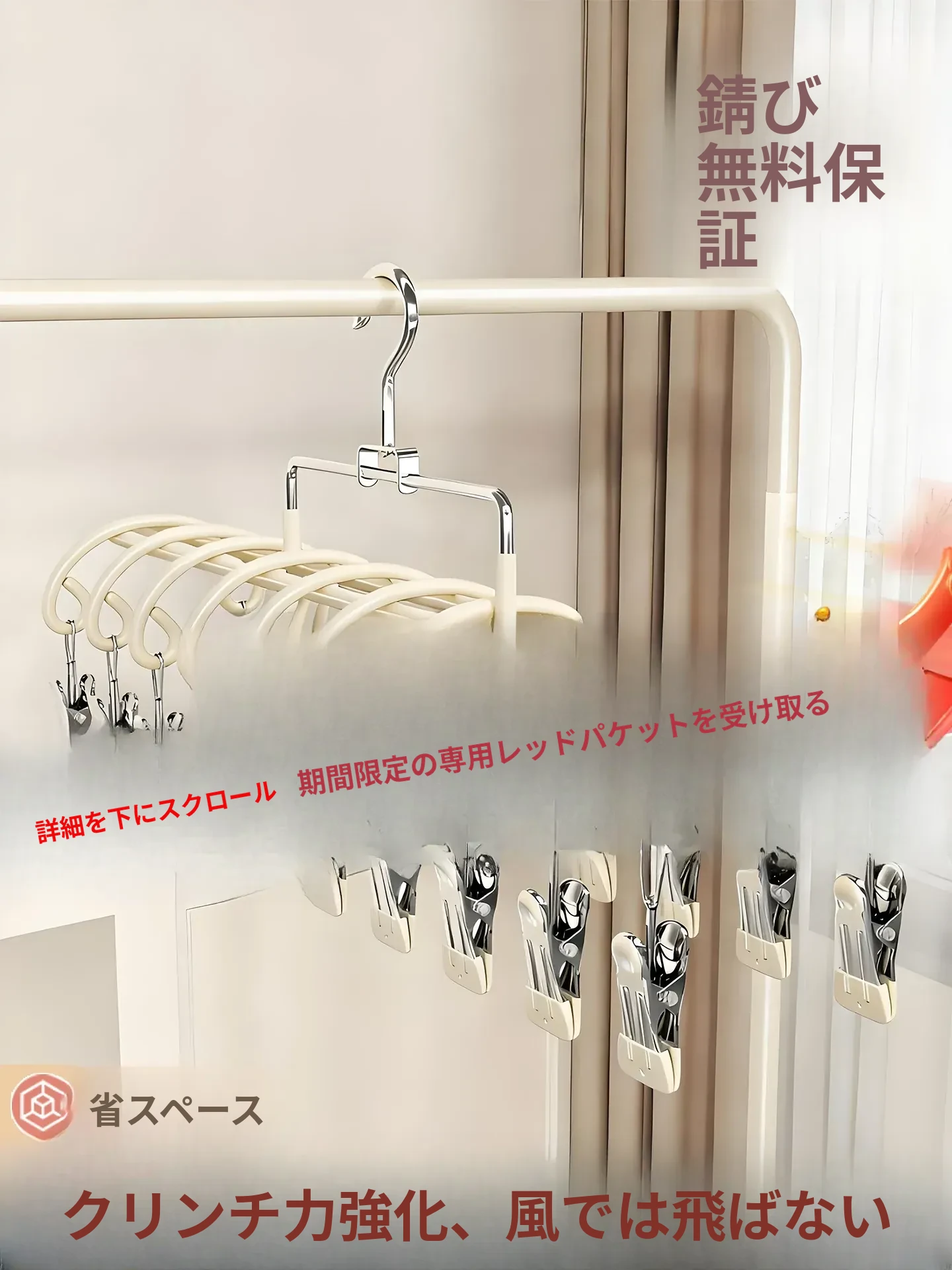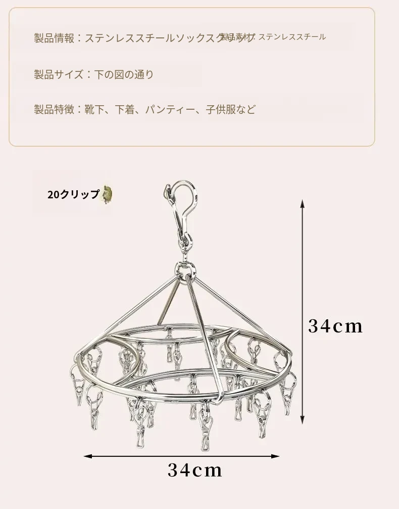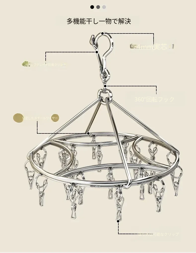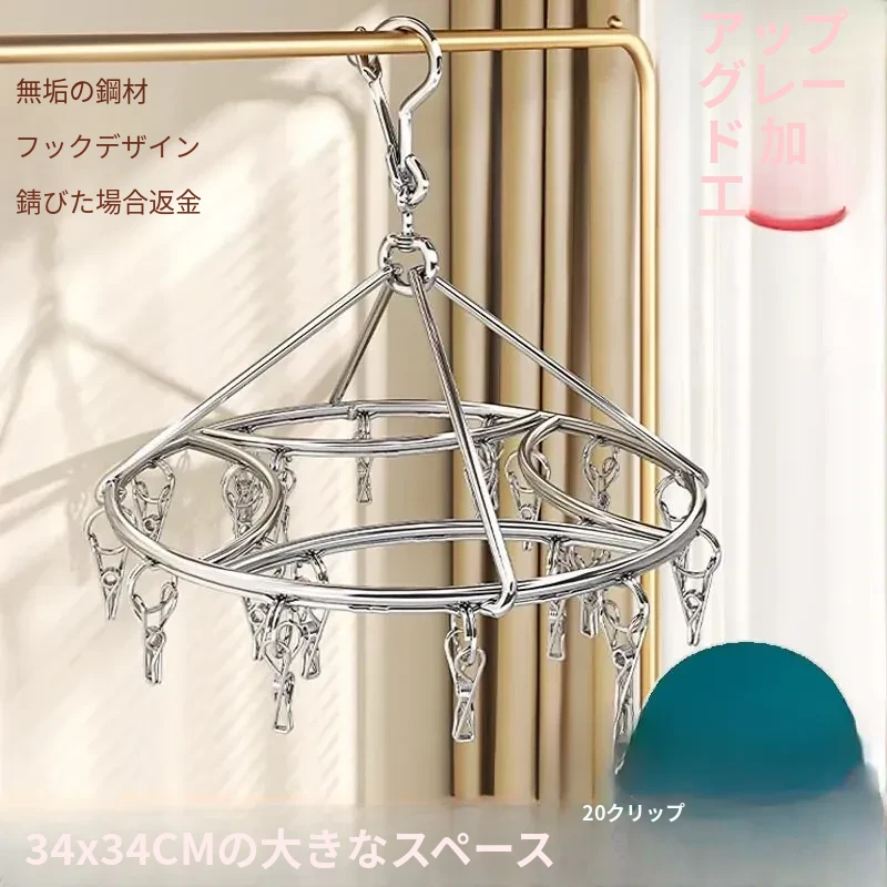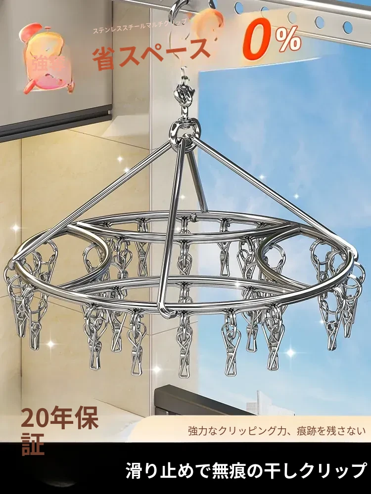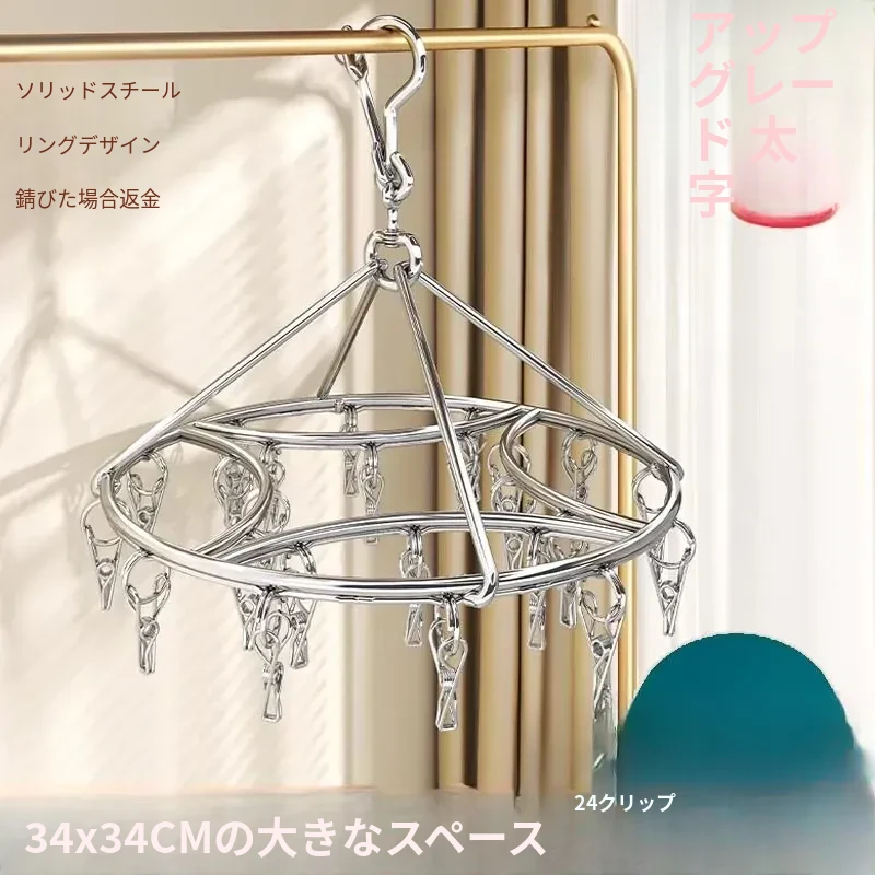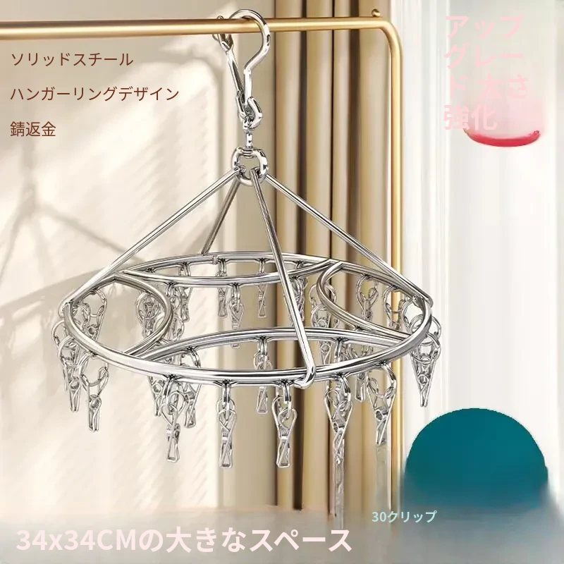 多機能ステンレス製物干しハンガー - 風に強く、バルコニーでの下着や靴下の干しに最適!お家での洗濯がもっと楽しくなる神器!