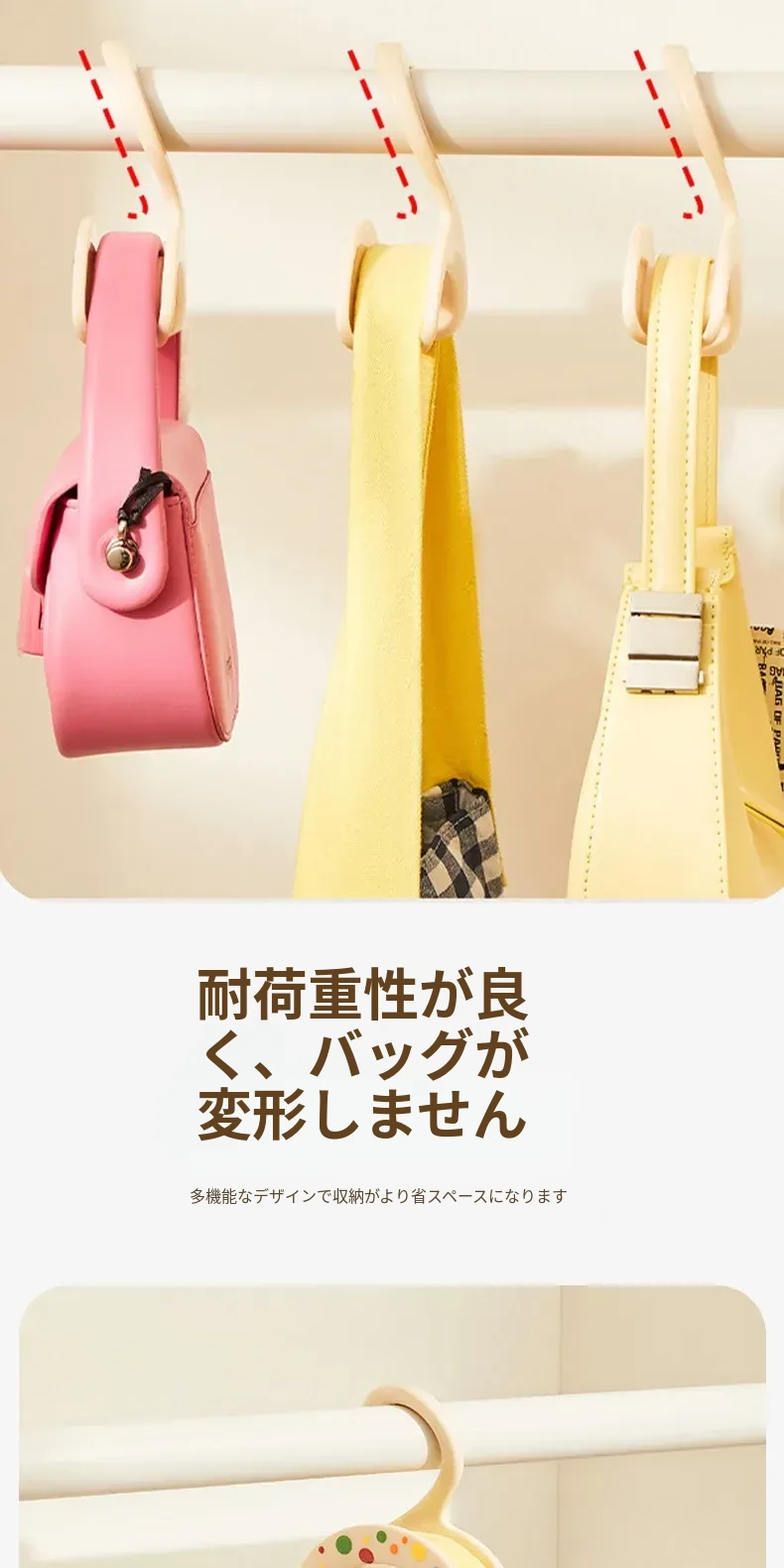 2個セット-ドーパミンドット【連掛けタイプ】アーチデザインで損傷せずシワにならないハンドル