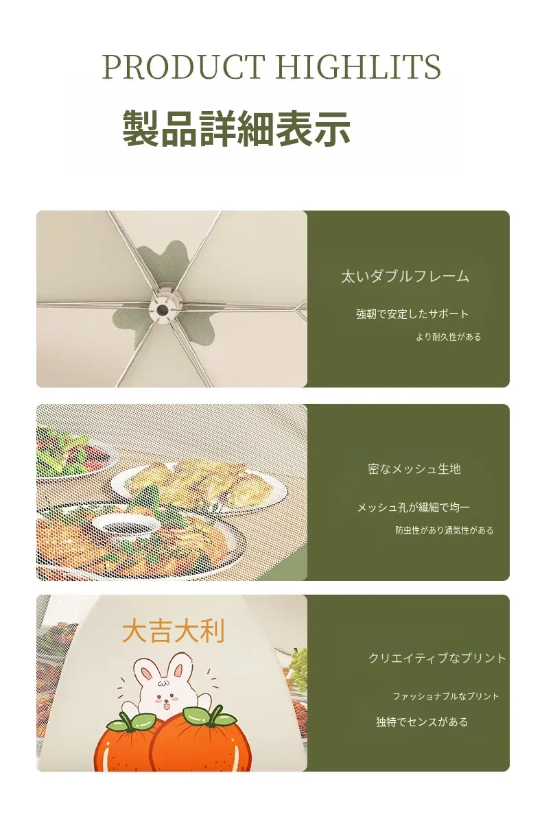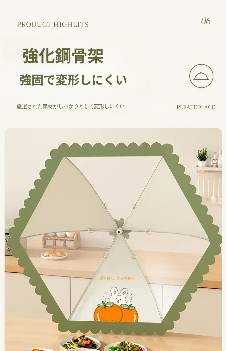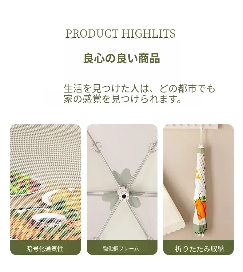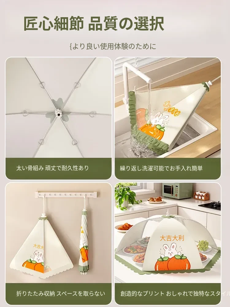 家庭用新型折りたたみ式食品カバー - ハエを寄せ付けない!残り物も安心、食卓を守る防塵カバー。清潔で便利なキッチン必需品!