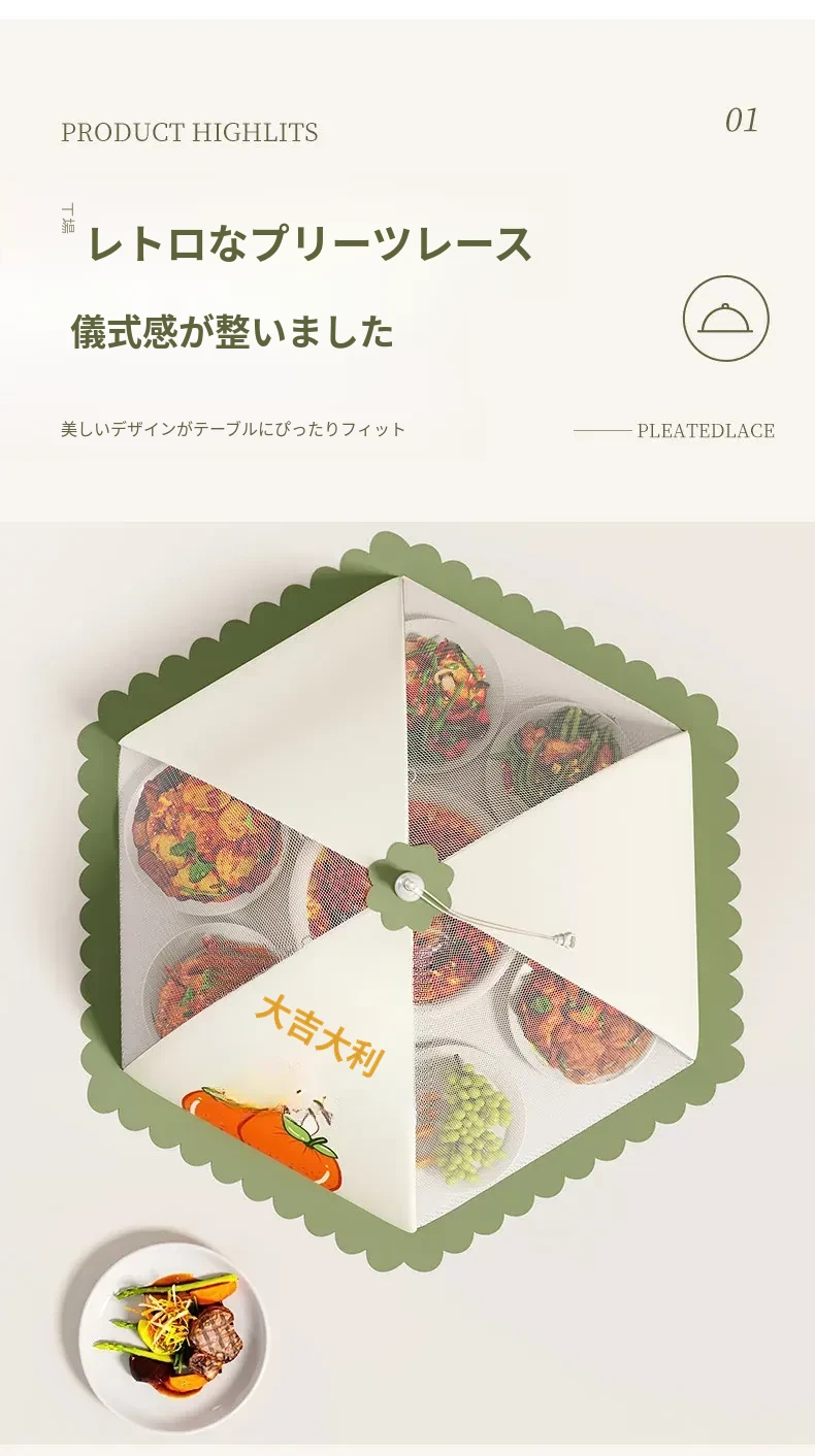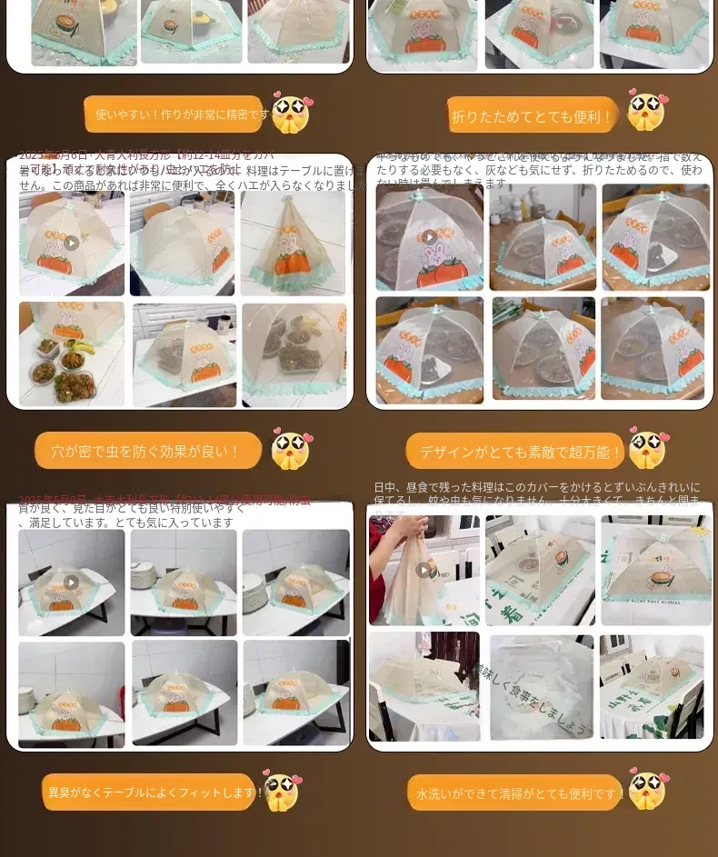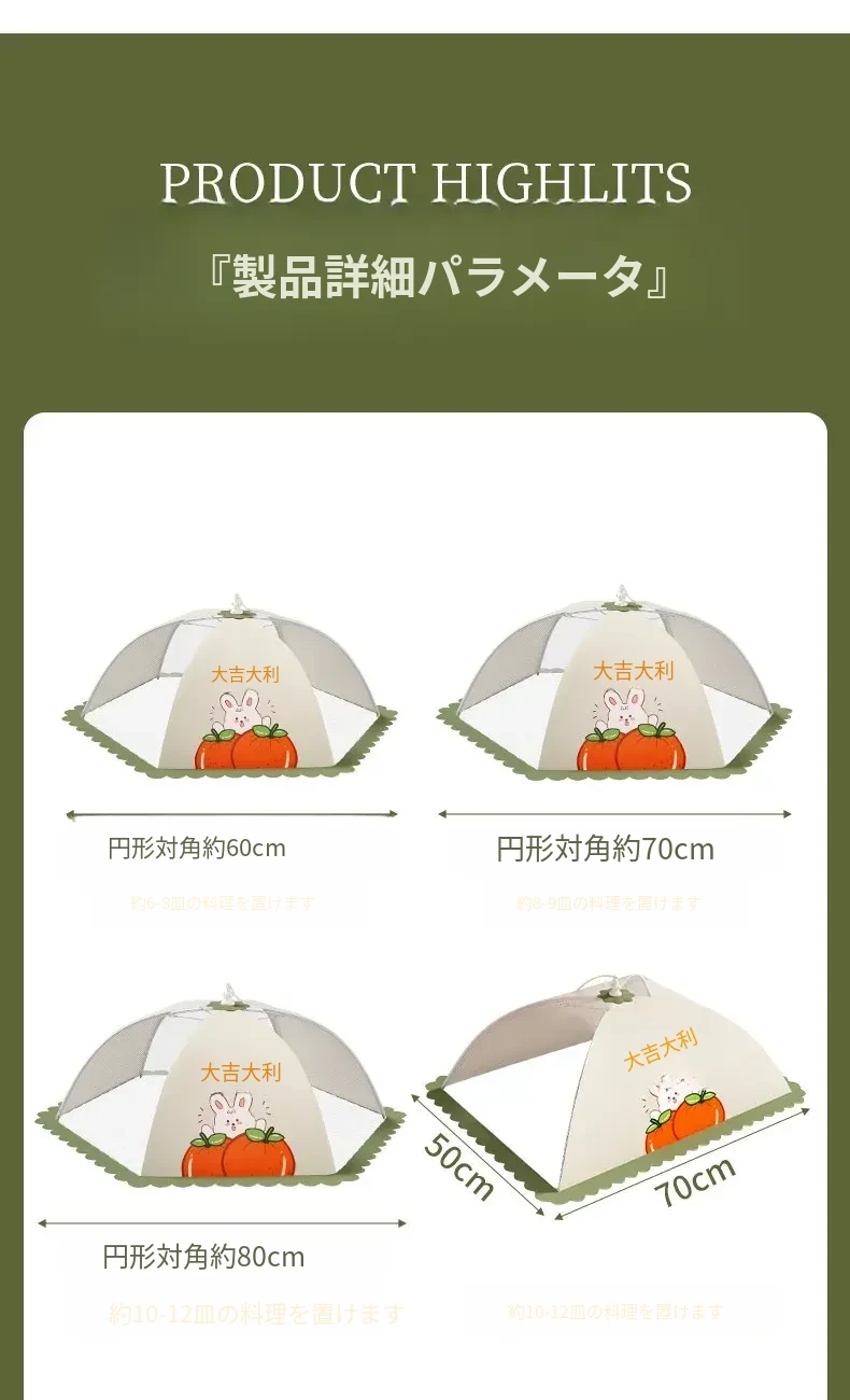 家庭用新型折りたたみ式食品カバー - ハエを寄せ付けない!残り物も安心、食卓を守る防塵カバー。清潔で便利なキッチン必需品!