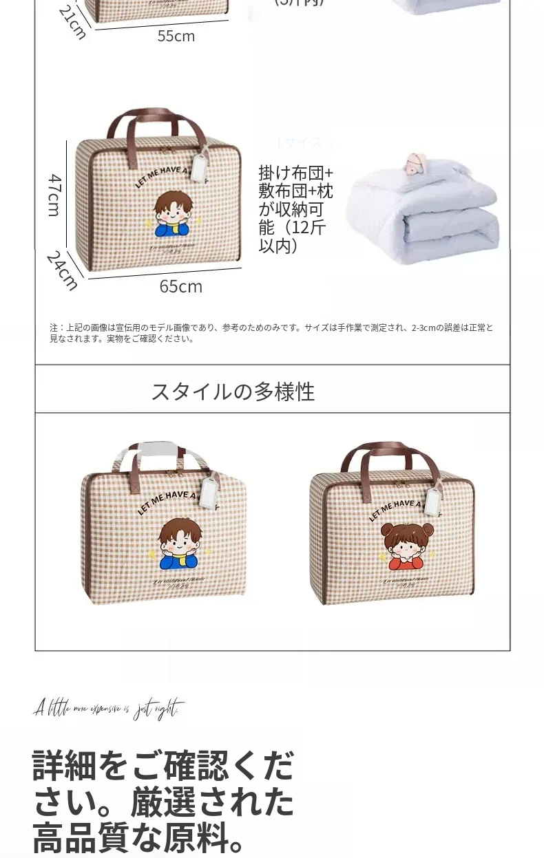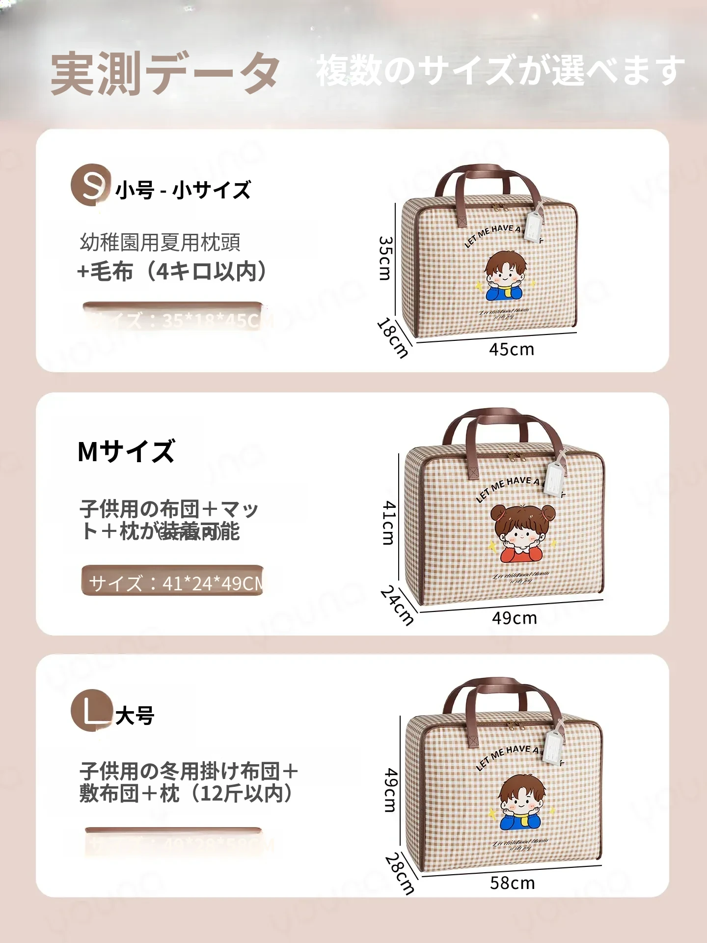 幼稚園用お布団収納バッグ|子供の布団や衣類をスッキリ整理!高品質オックスフォード生地使用、持ち運びに便利な手提げ付き!入園準備に最適!