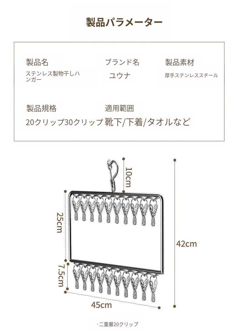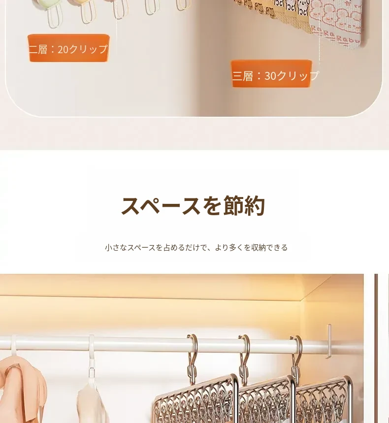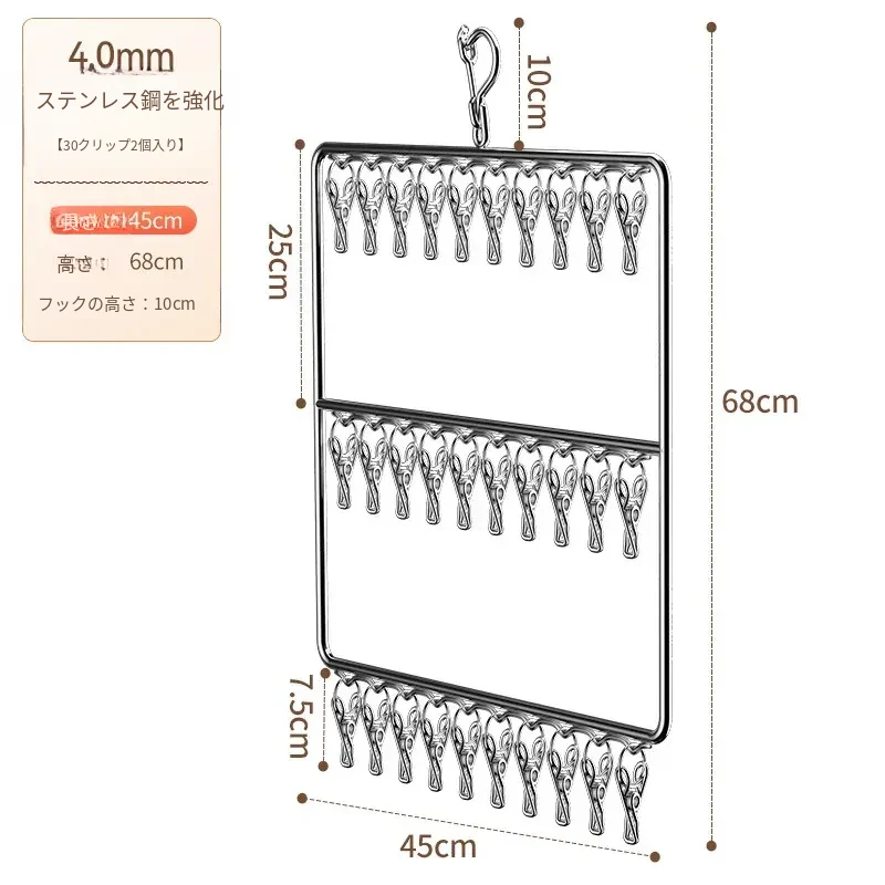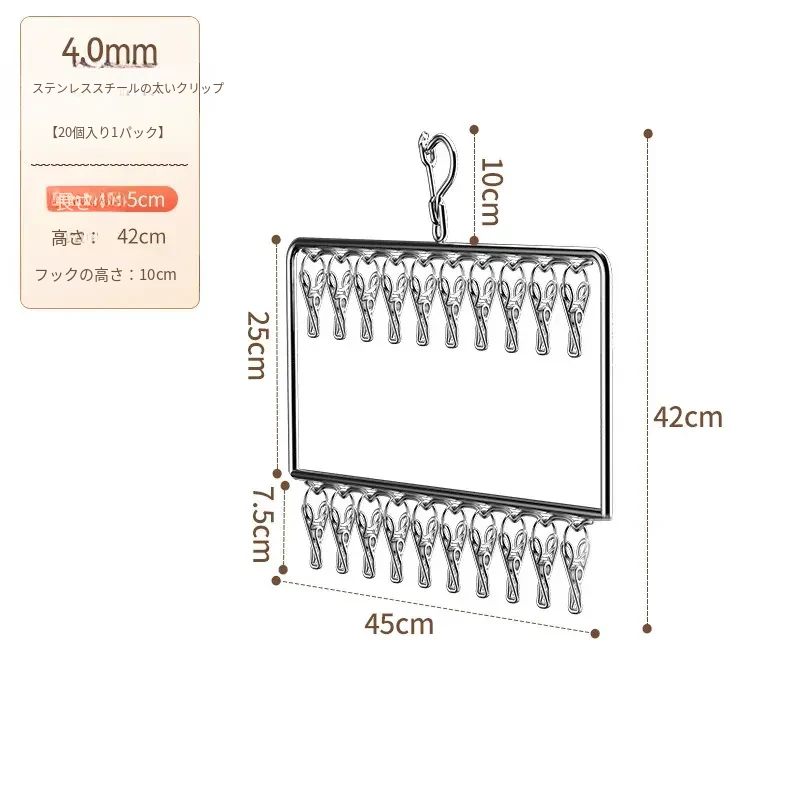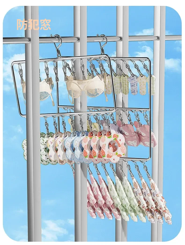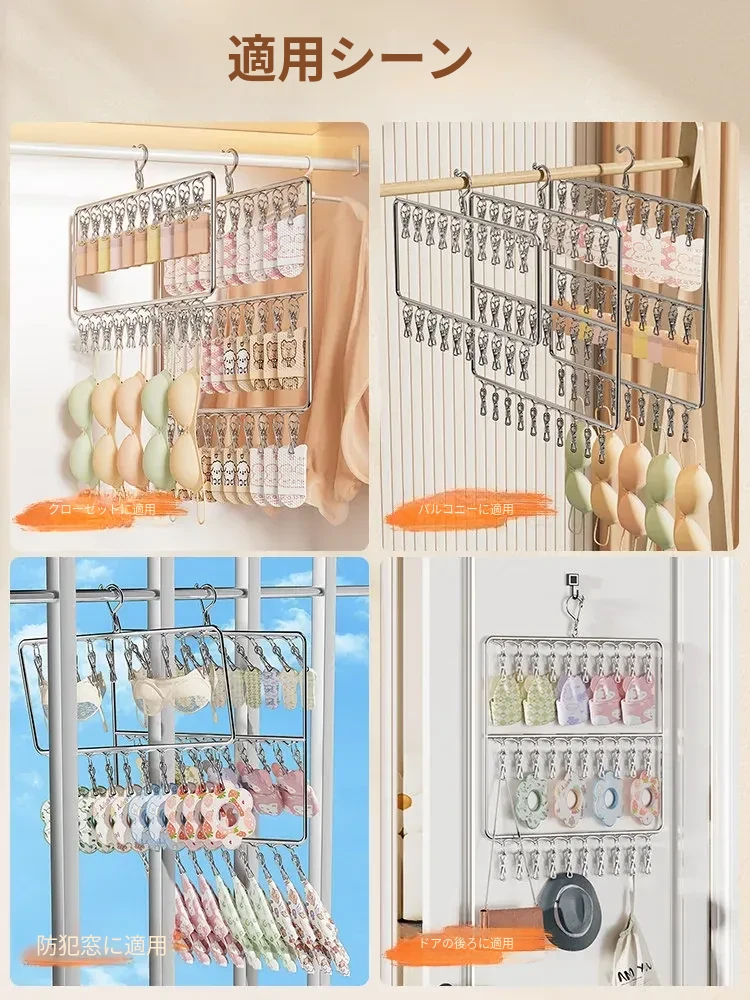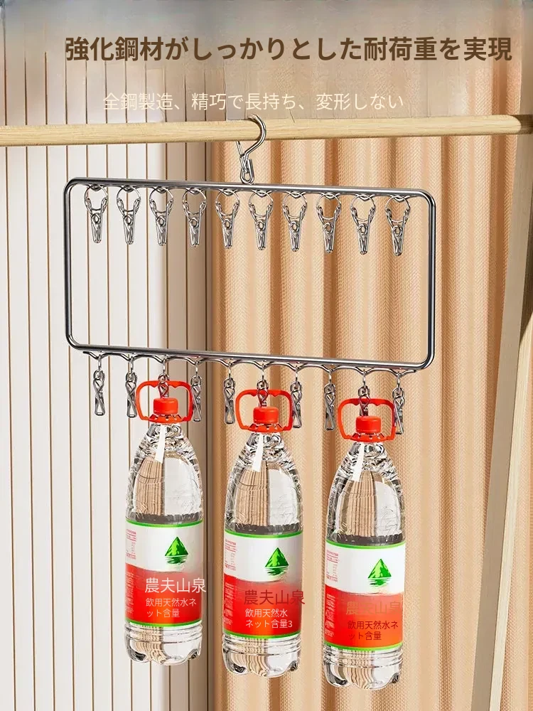 ステンレス製の多機能洗濯ハンガー!風に強く滑りにくいソックスクリップ付き。赤ちゃんの衣類や下着も安心して干せる、ママと学生に最適な洗濯便利グッズ!