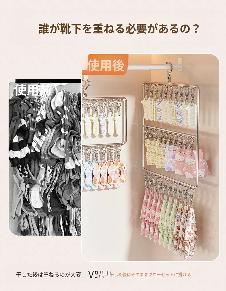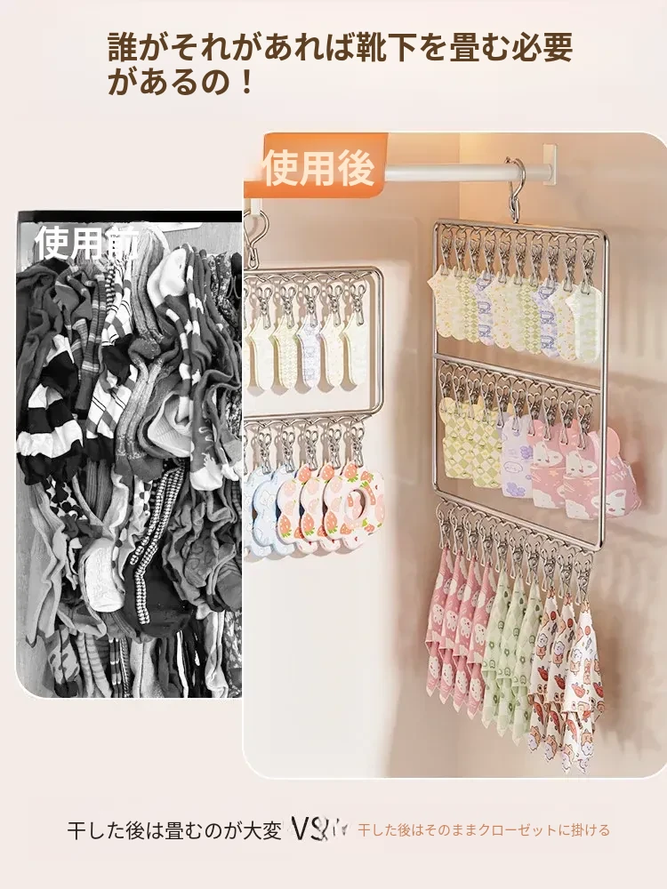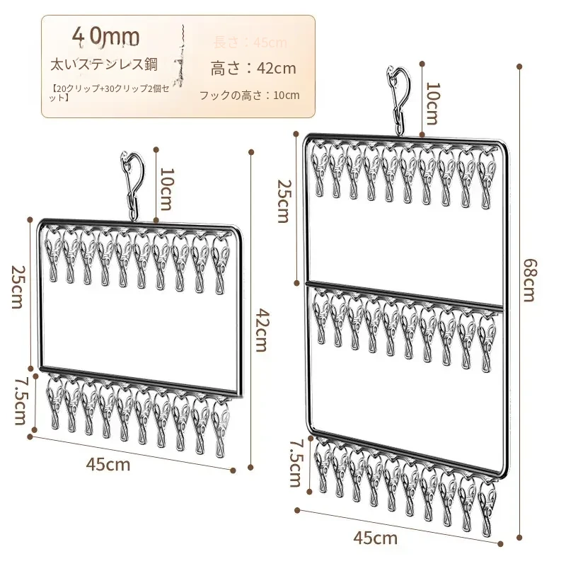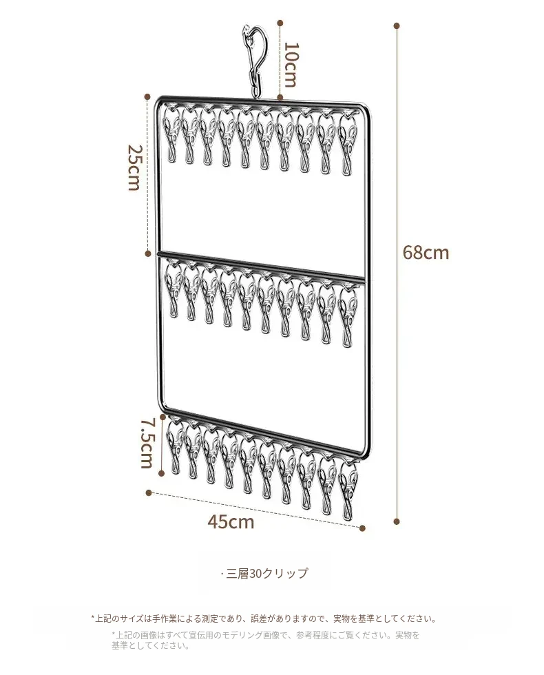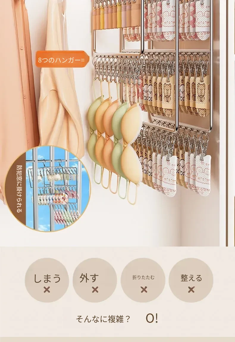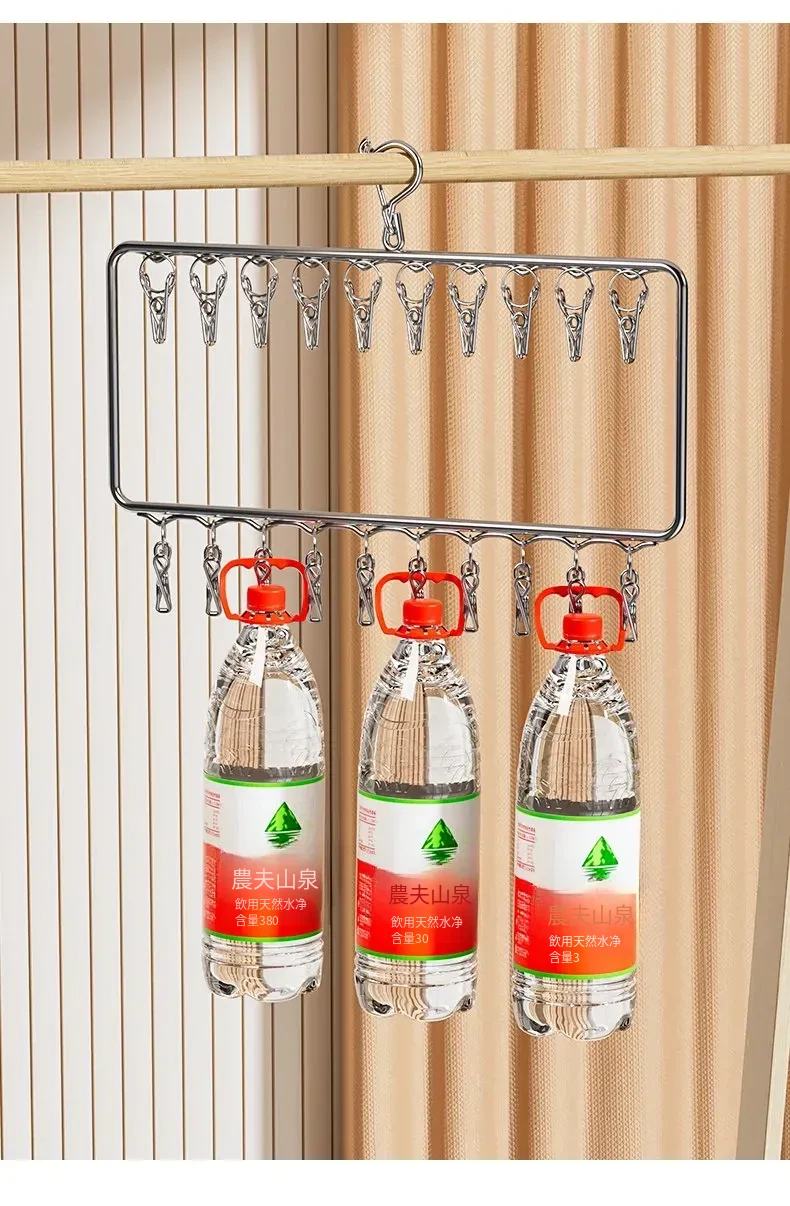 ステンレス製の多機能洗濯ハンガー!風に強く滑りにくいソックスクリップ付き。赤ちゃんの衣類や下着も安心して干せる、ママと学生に最適な洗濯便利グッズ!
