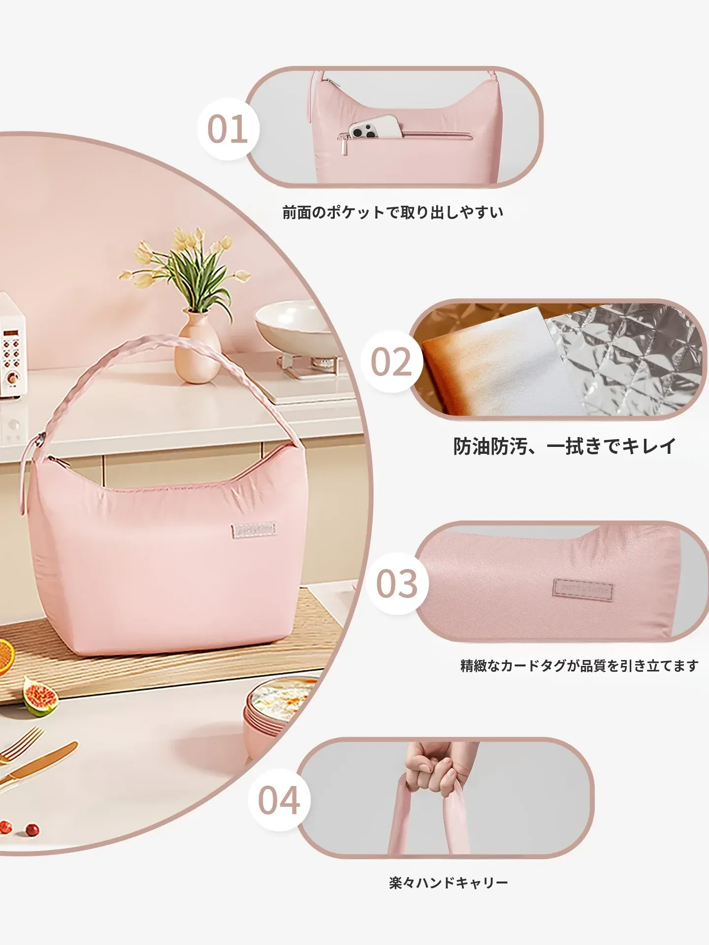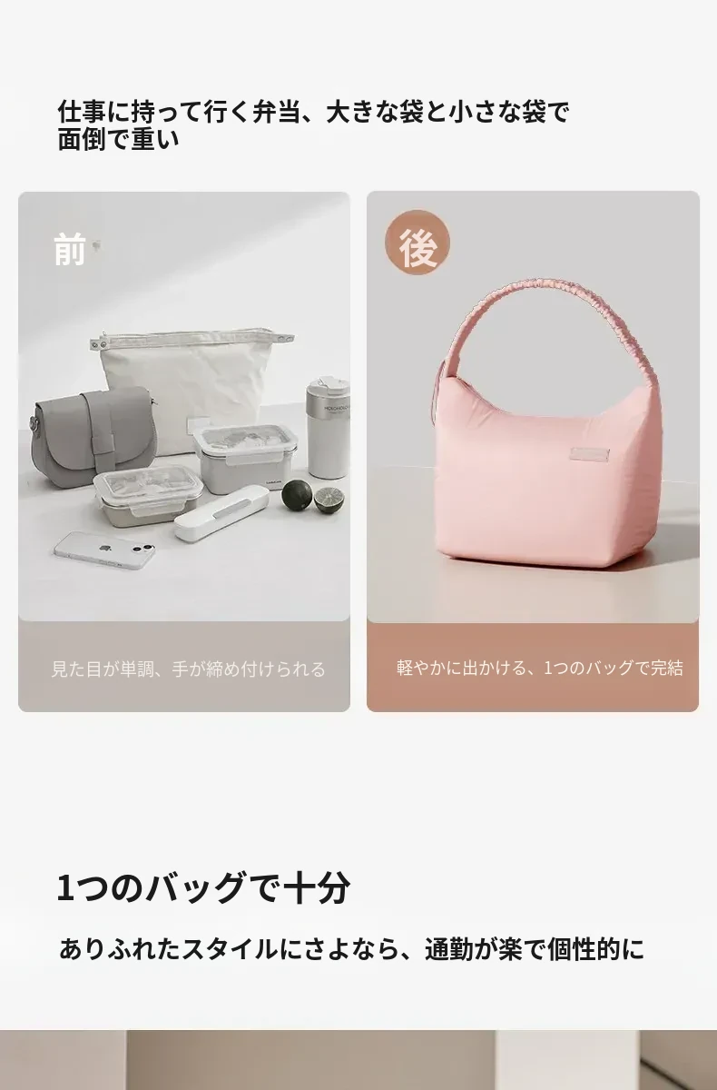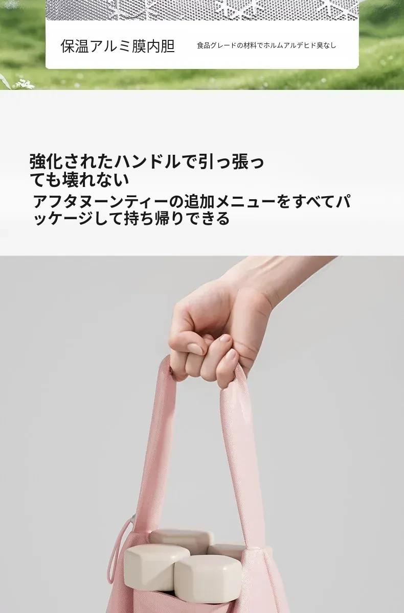 高機能!防水・防油の保温弁当バッグ - おしゃれで軽量、通勤・オフィスに最適なアルミ箔製ランチバッグ!美味しさを保ちながら、スタイリッシュに持ち運べます。