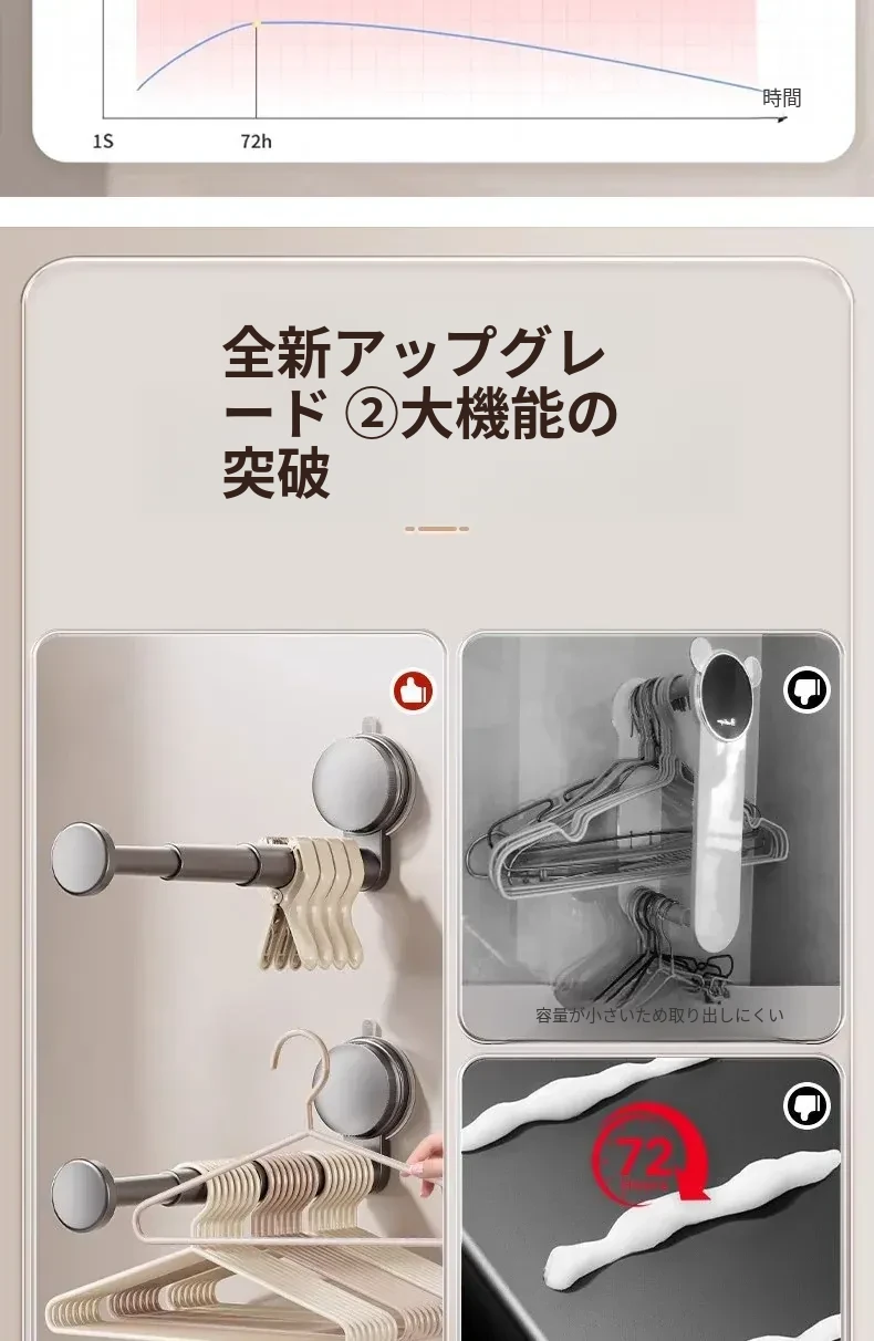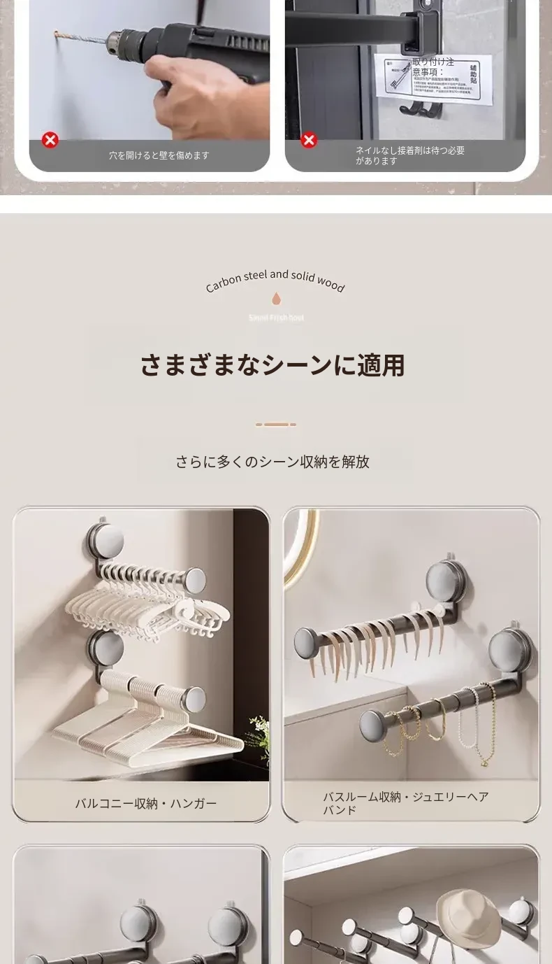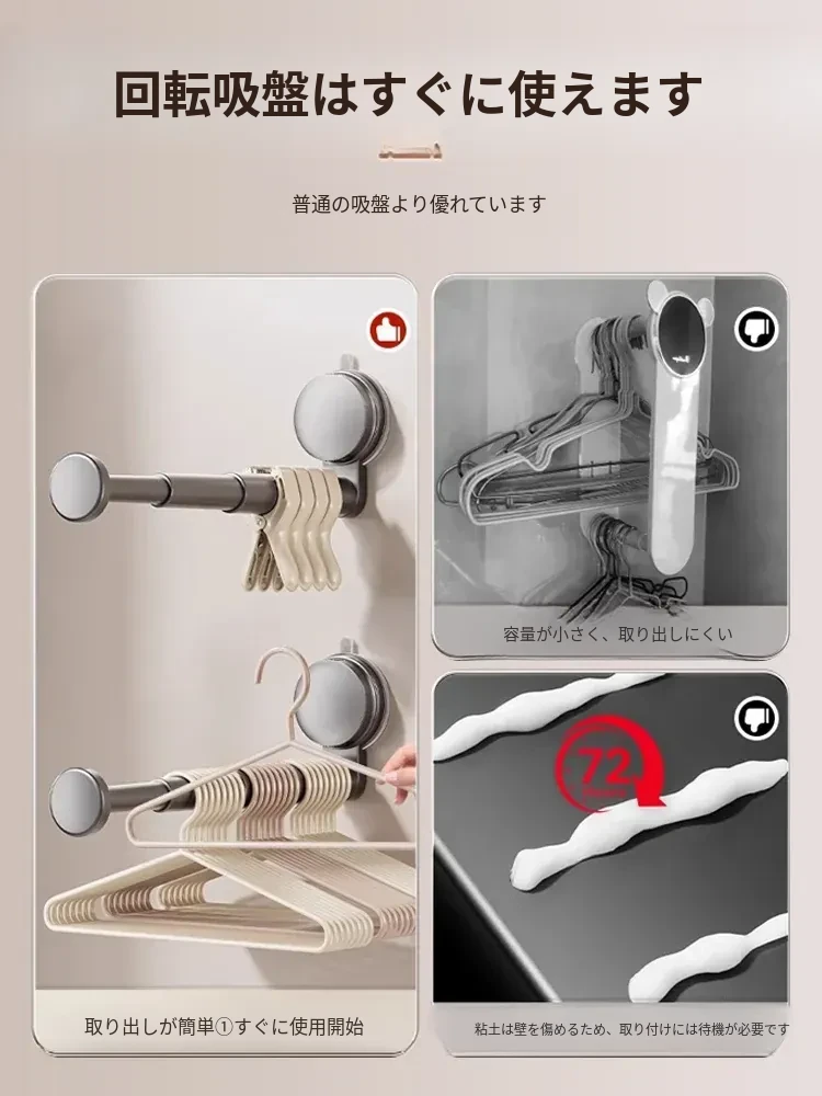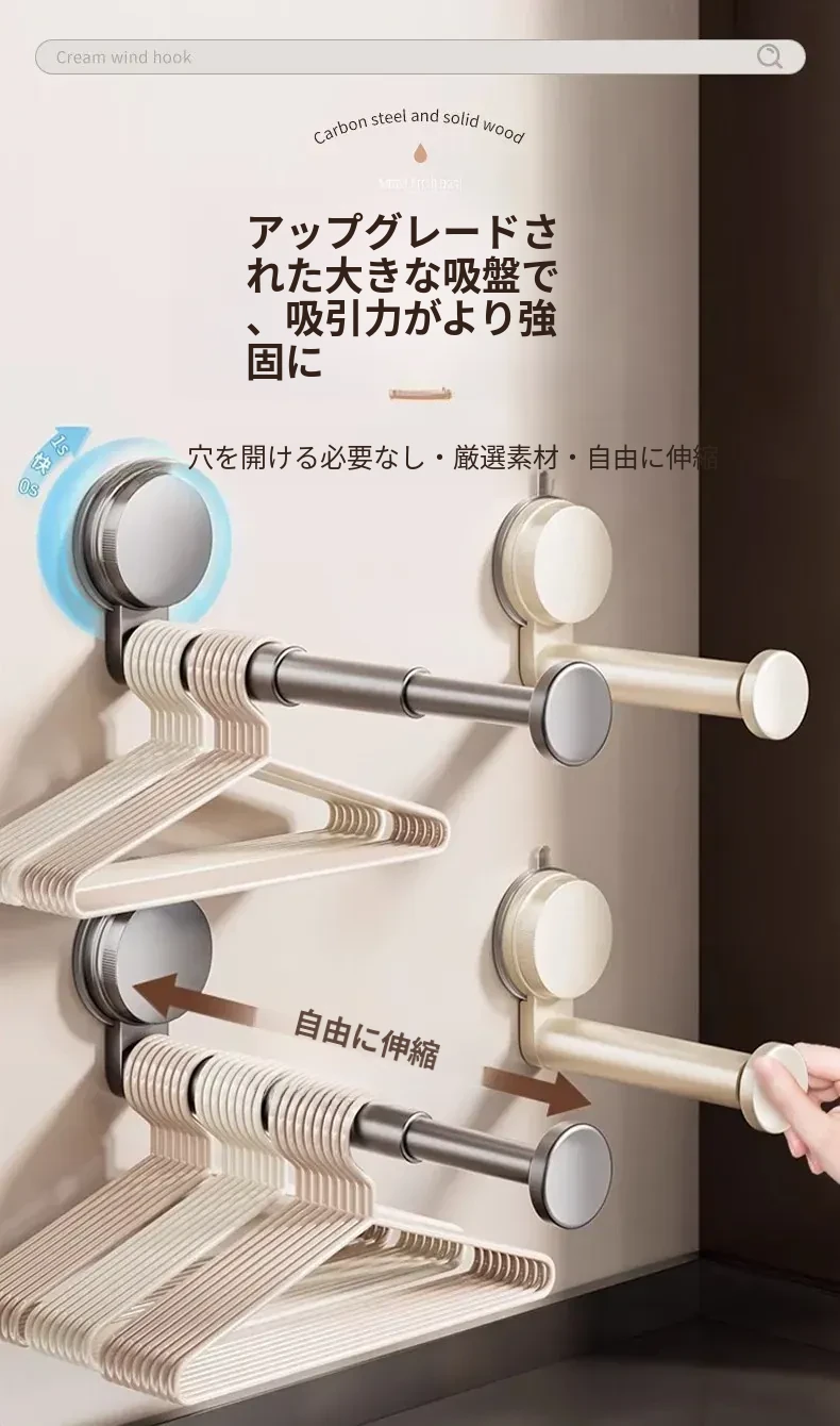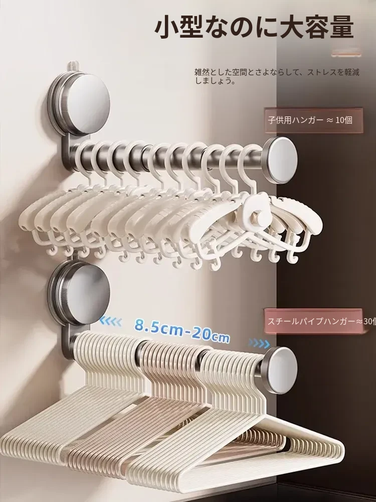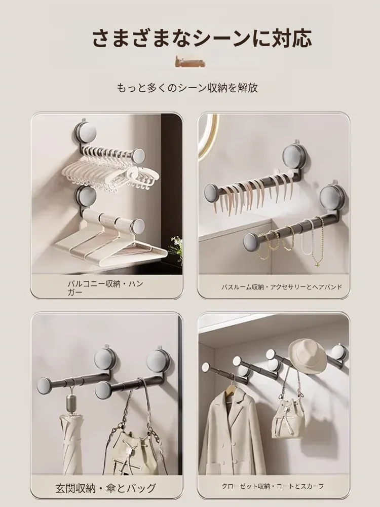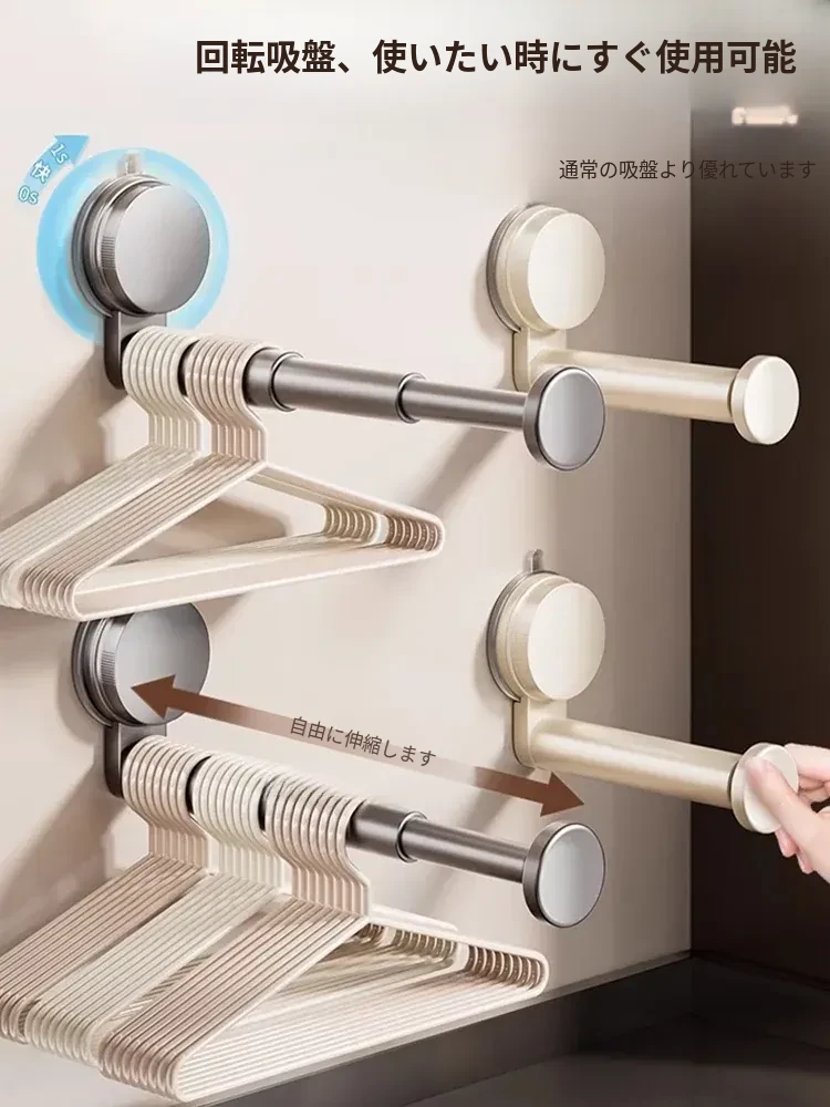 吸盤式衣類ハンガー収納アイテム!家庭用バルコニーに最適な多機能伸縮式フック、穴あけ不要&跡が残らない壁掛けハンガーでお部屋をスッキリ整理!