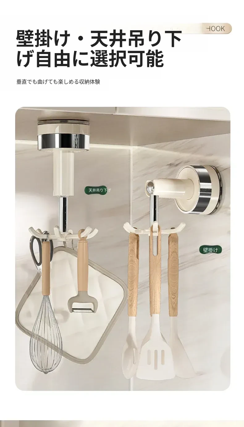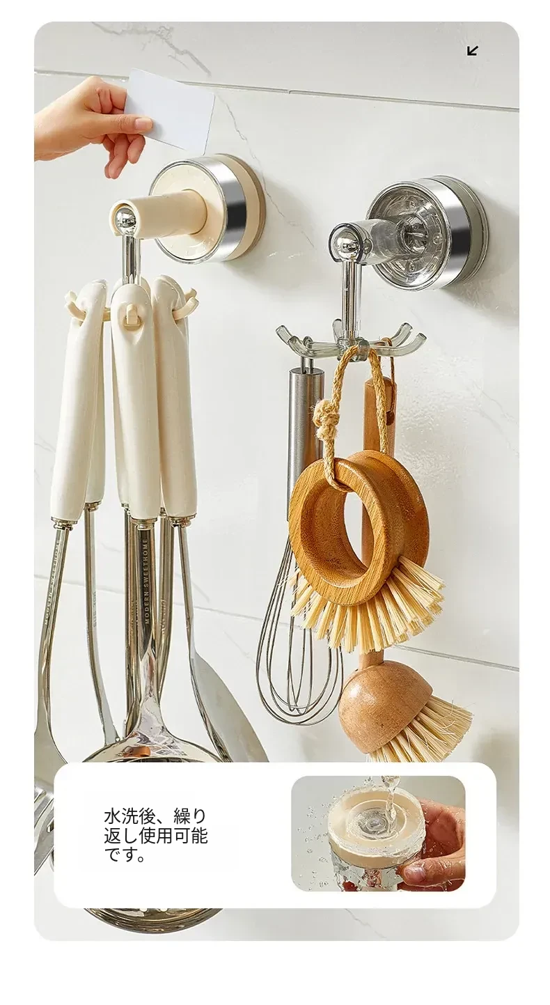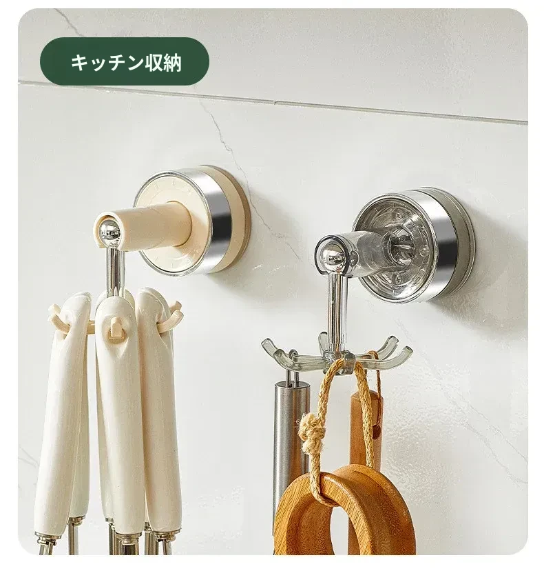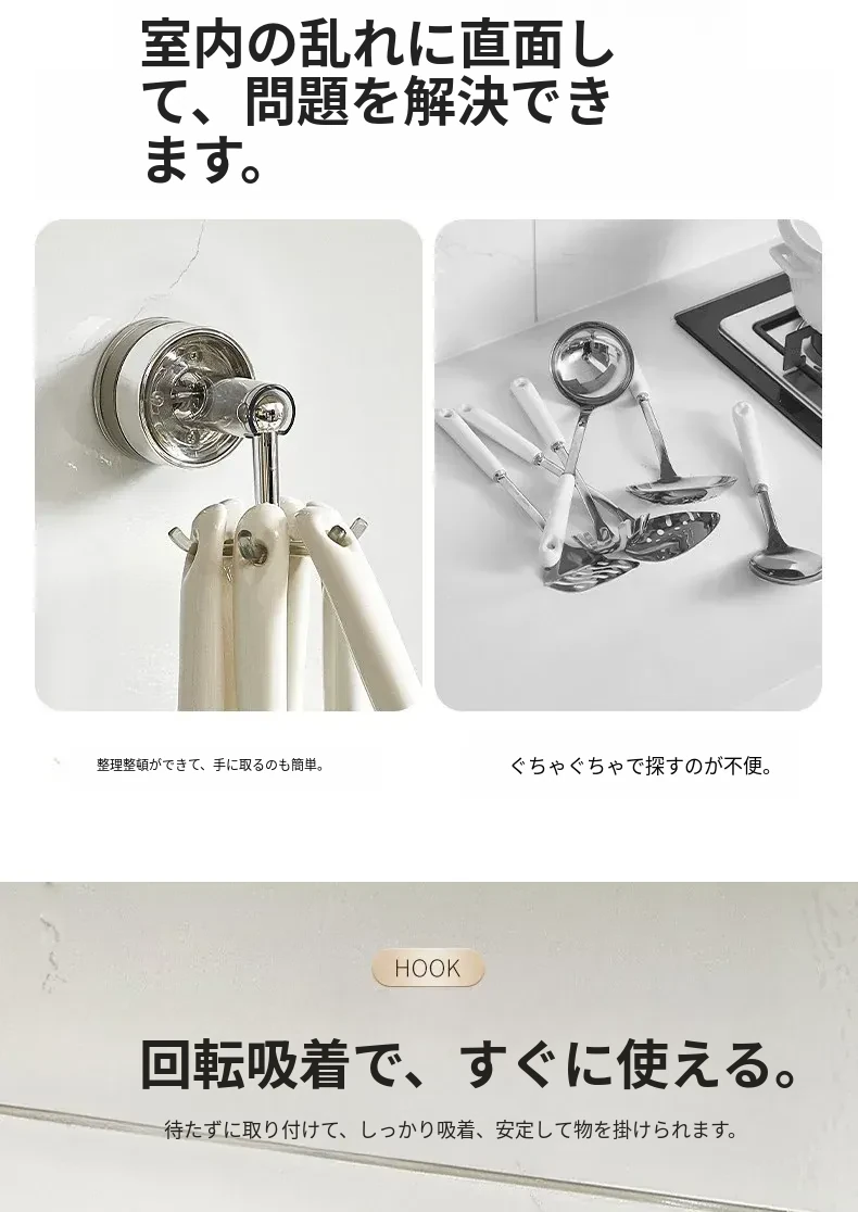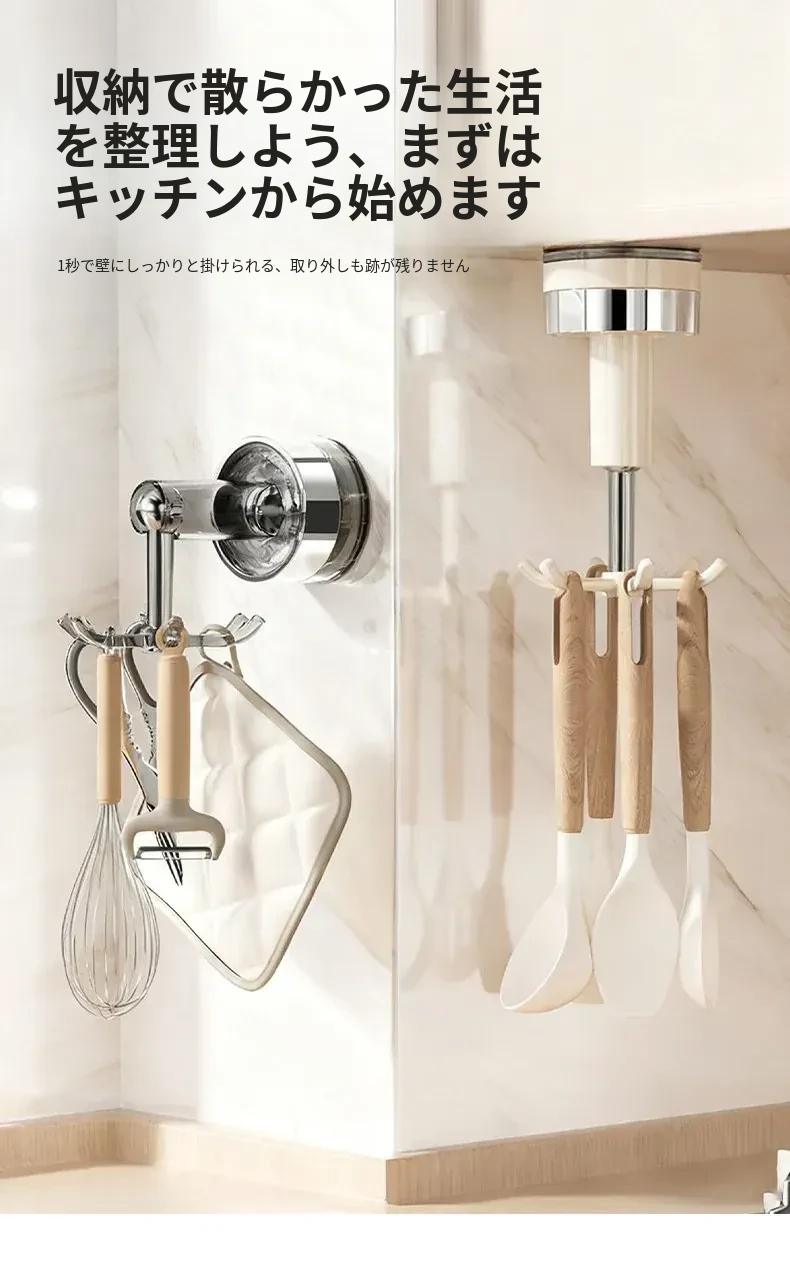 吸盤式キッチンフック 壁掛け多機能収納ラック 穴あけ不要で強力耐荷重 鍋やお玉の整理に最適!おしゃれで便利なキッチンアイテム!