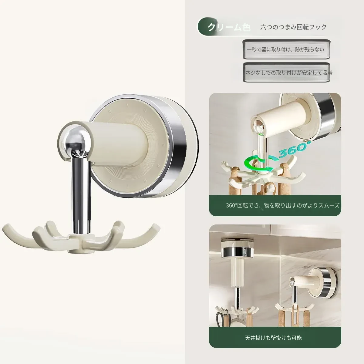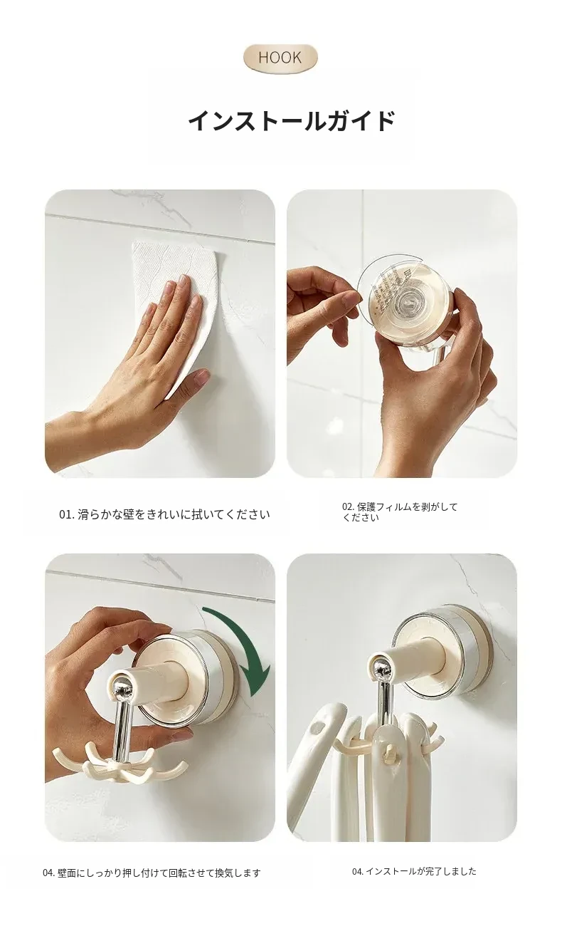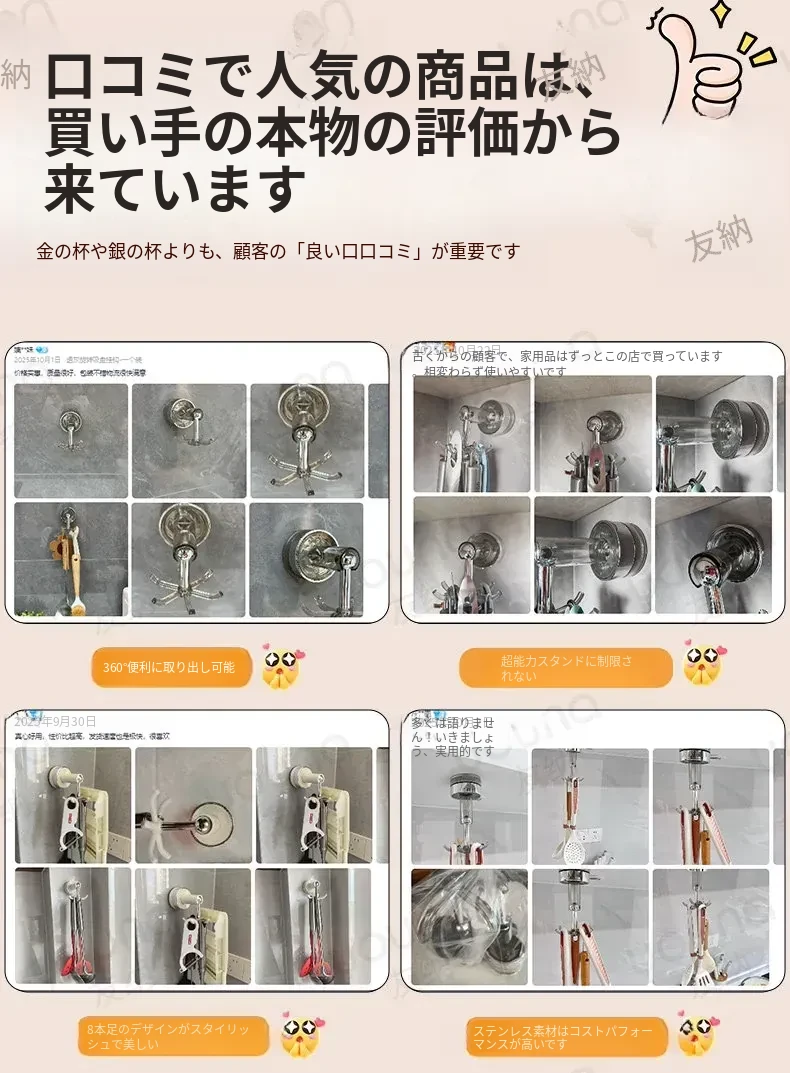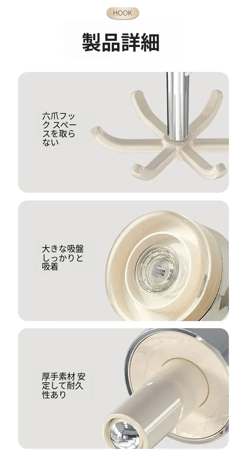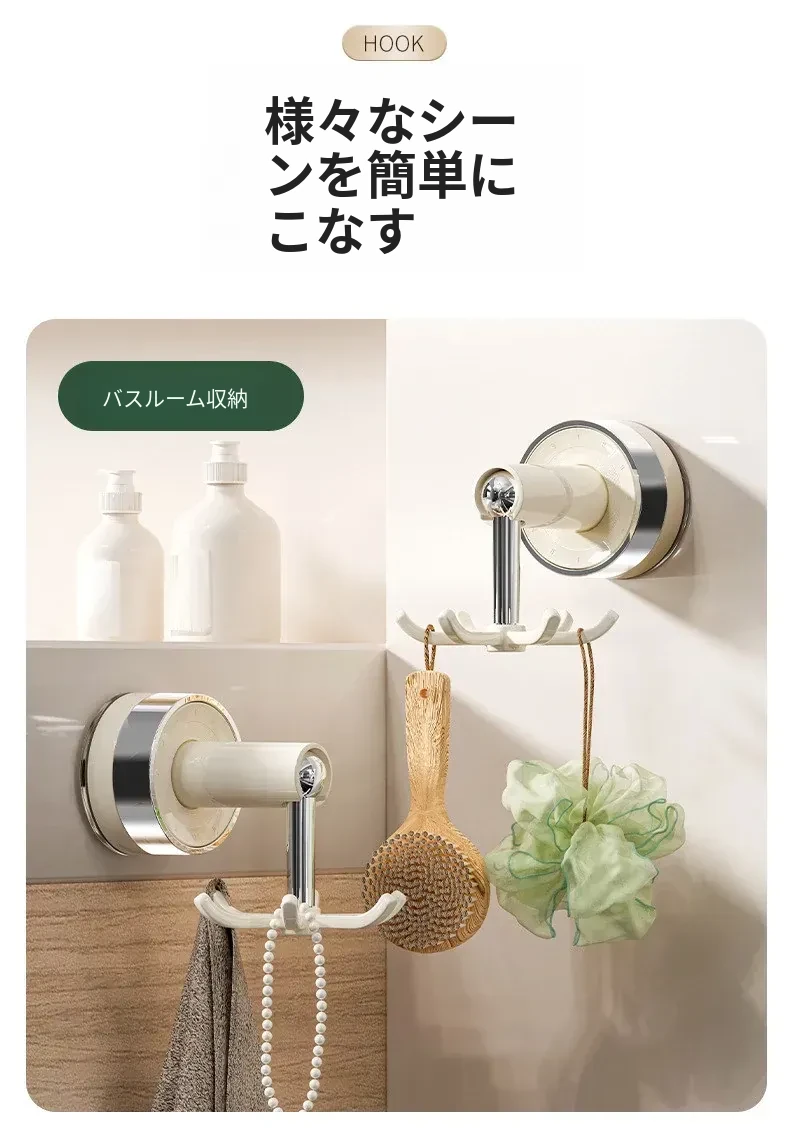 吸盤式キッチンフック 壁掛け多機能収納ラック 穴あけ不要で強力耐荷重 鍋やお玉の整理に最適!おしゃれで便利なキッチンアイテム!