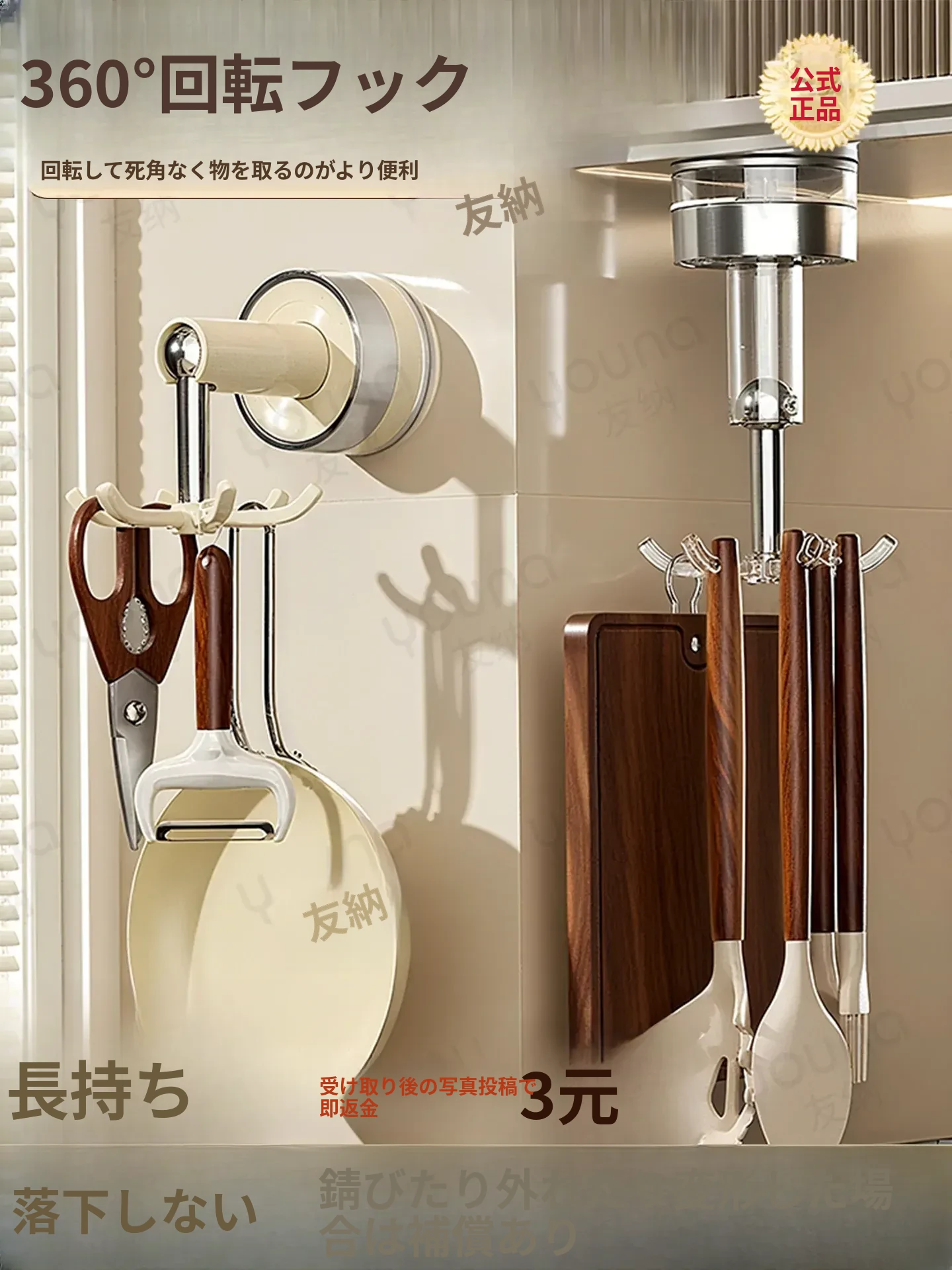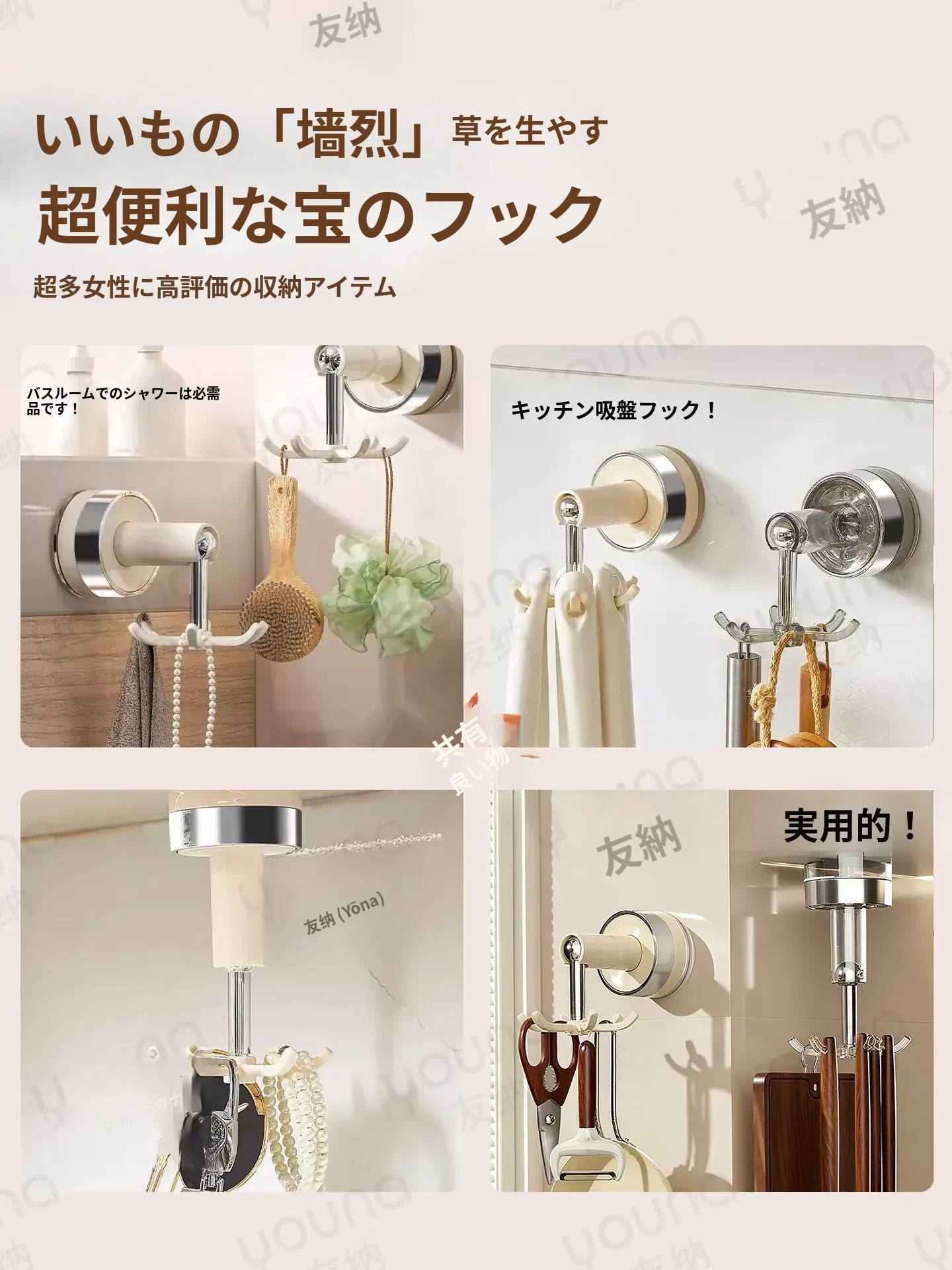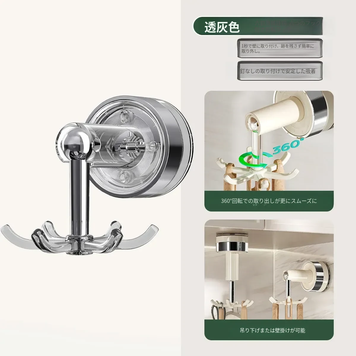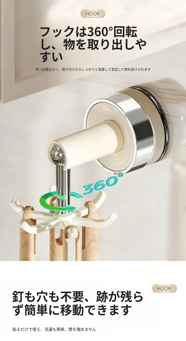吸盤式キッチンフック 壁掛け多機能収納ラック 穴あけ不要で強力耐荷重 鍋やお玉の整理に最適!おしゃれで便利なキッチンアイテム!
