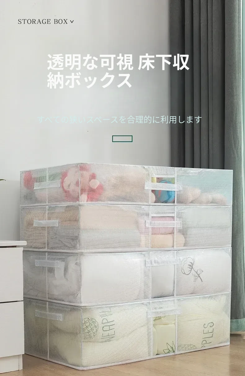 PVCメッシュ底収納ボックス/透明可視/省スペース
