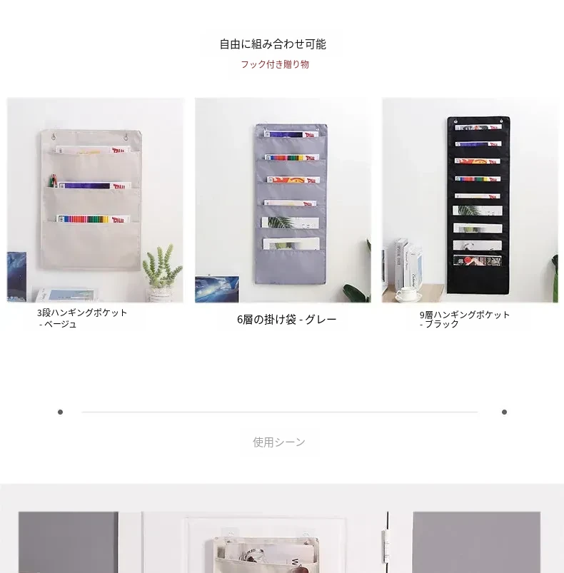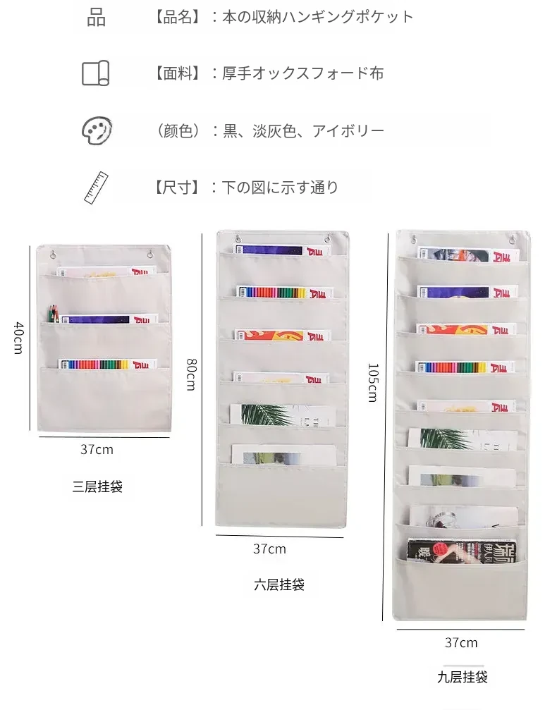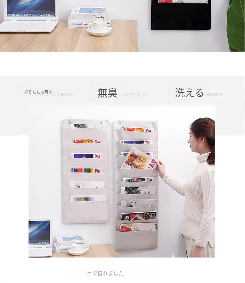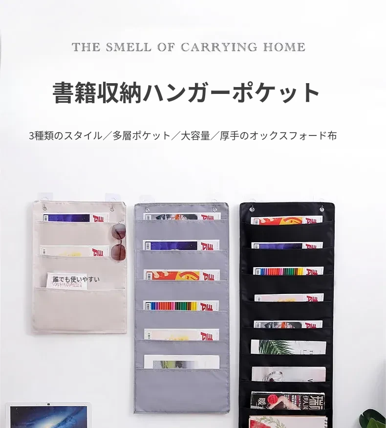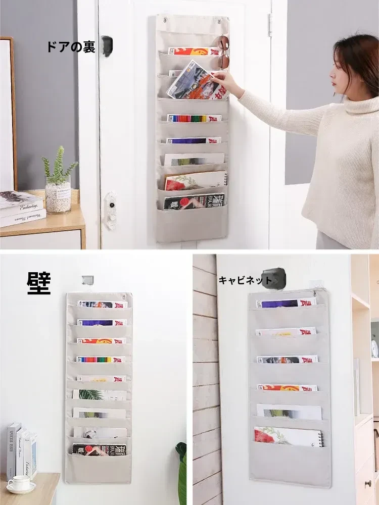 ドア裏にぴったり!本・雑誌収納ハンガーポケット - 壁掛けファイル・新聞・小物整理袋、教室やリビングで大活躍の便利グッズ!